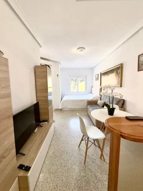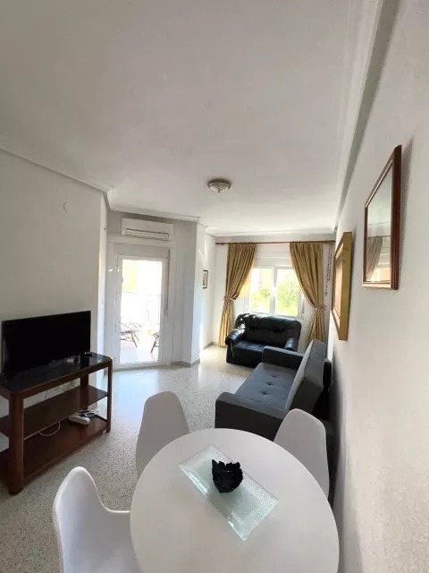 Magnificent apartment located on the 2nd floor of a building with an elevator, just 150 meters from Acequión Beach. This attractive apartment, ideal for both living and vacationing, features a charming balcony offering side sea views, perfect for enjoying the sea breeze and the area’s warm climate. The apartment has one bedroom equipped with a large built-in wardrobe, as well as a fully equipped kitchen that provides functionality and style. It also features air conditioning and electric heating, ensuring year-round comfort. Recently renovated, the property stands out for its high-quality finishes and thoughtful design, providing a cozy and sophisticated atmosphere. The building’s amenities include a beautiful communal pool, ideal for relaxing and enjoying the sun. The building’s entrance is elegant and well-maintained. The apartment’s location is unbeatable, with all necessary services within walking distance: a 24-hour hospital, supermarkets, restaurants, pharmacies, and access to public transportation.