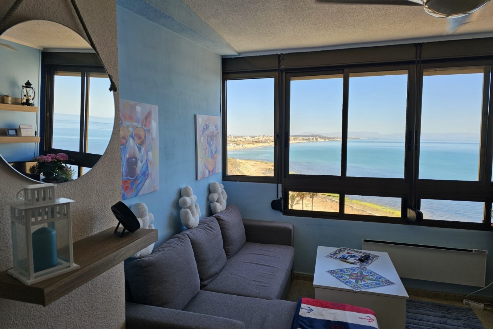 One-bedroom northeast-facing apartment with panoramic sea and mountain views, frontline to the coast. Shops, restaurants, and public transport are located just outside the block. La Mata beach is just a short walk from the apartment. Ideal location, ideal for renting and living. Renovated apartment ready to move into.