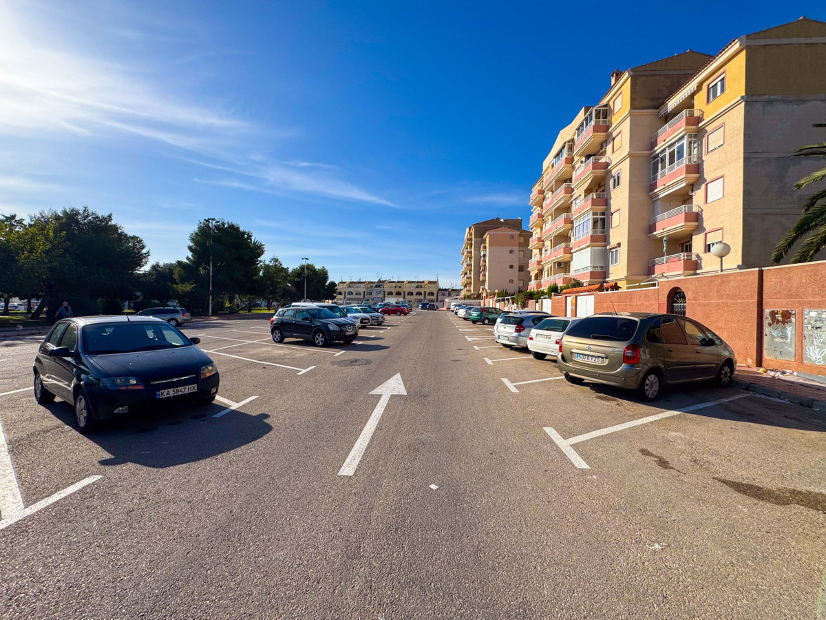 This upper floor bungalow in the Calas Blancas urbanization of Torrevieja, located just 1 kilometer from the sea, offers a sunny terrace with direct access to communal gardens and swimming pools, highlighting its privileged location near Parque de Europa and only a 15-minute walk from the city center. Featuring a comfortable and practical layout, the bungalow includes a living-dining room, fully equipped open kitchen, a complete bathroom, and one bedroom with built-in wardrobe. It benefits from two orientations, northeast and southwest, providing pleasant natural light and cross ventilation. The urbanization offers tranquility and access to communal areas perfect for leisure and relaxation. Its proximity to services, transport, and shopping areas makes this property ideal for permanent residence or investment with seasonal rental options. Contact us to visit this bungalow or request a virtual tour or detailed floor plan.