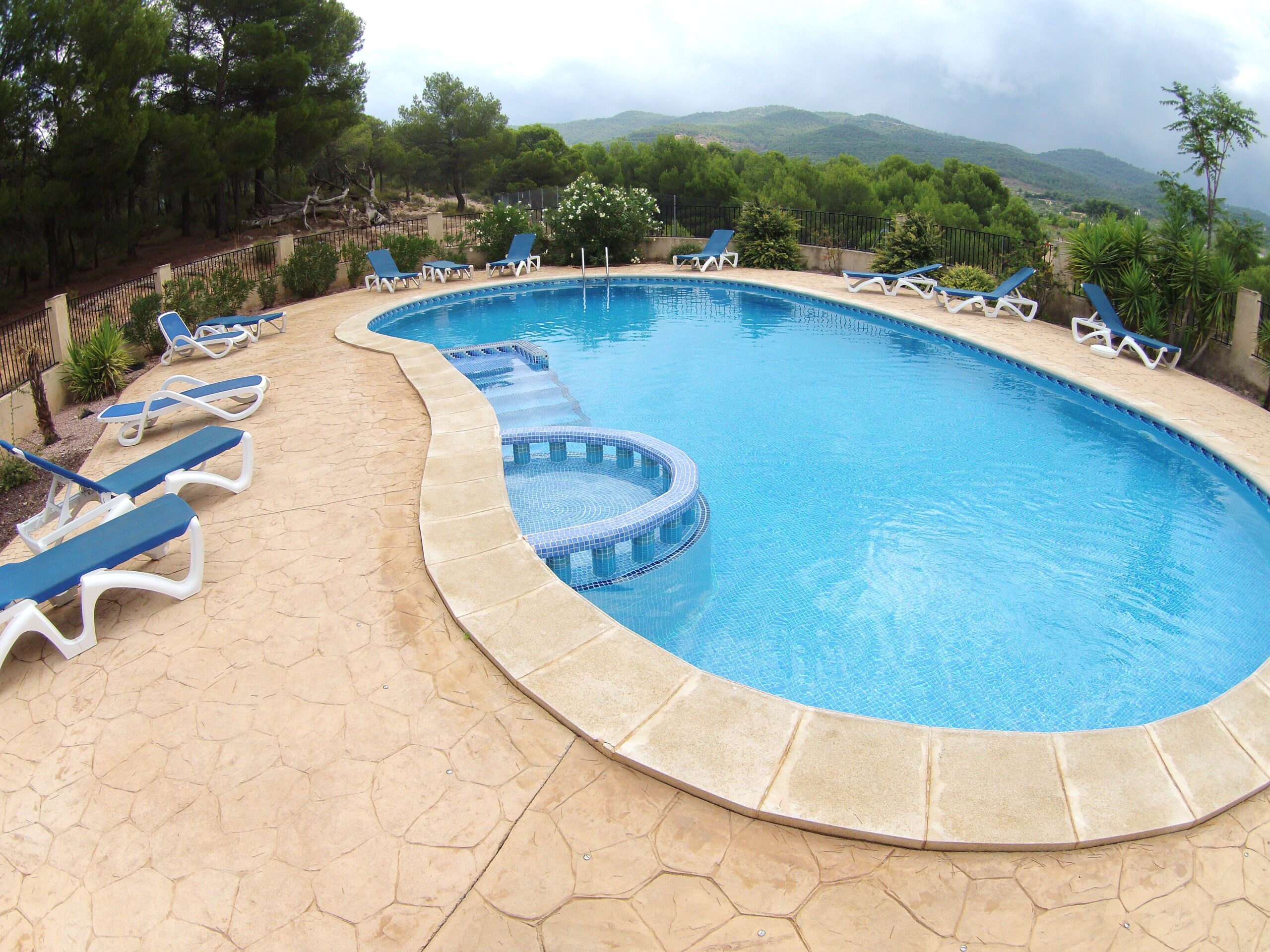 This Magnificent, 15 bedroom, Traditional Spanish Farmhouse in Ibi (one of only fifteen masias in the Vinalopo Valley] is located on a truly majestic 55.000m2 plot of land, incorporating a beautiful pine forest, fig, pomegranate, almond, grape vine, apple, pear, cherry, golden plum & a 60 tree olive grove; where the olives are harvested and the olive oil can be purchased at the local cooperative. Set along the stunning scenic route between Ibi and Alcoi, with great views of The Parc Natural del Carrascar de La Font Roja, yet just a 15 to 20 minute walk from the town centre of Ibi, where you can find all local amenities and facilities you’ll ever need, including a daily traditional Spanish Food Market. This 19th century building was lovingly renovated and restored to its former glory in 2005, using only natural materials and restoring some of the pretty original features, such as the ceiling beams throughout. The main part of the house comprises of the ground floor and mezzanine with two different independent apartments on the 1st & 2nd floors and a further annex apartment to the rear of the property. In essence consisting of 4 independent living areas. The property in total has 15 bedrooms, 11 bathrooms, 4 kitchens, 4 dining rooms, 4 living rooms, a games room and a delightful courtyard, perfect for dining outdoors. On the ground floor and accessible from both inside and outside there is also a laundry room. The owners have built a stunning south-facing 17m x 6m swimming pool [securely enclosed] a summer house with shower and toilet, lower ground pump- house with storage room. A permanent wooden gazebo with outside kitchen, BBQ, picnic tables, benches and night lights, an ideal spot for your guests to enjoy the outdoor Spanish living… There are many extras included with this unique opportunity such as air-conditioning and heating, satellite tv, wifi, and where the owners currently provide a variety of services to their guests, including weekly maid, linen and towel service, combination safe, welcome pack on arrival, house manager and maintenance on call, and much more…Although the property is currently split into separate independent accommodations, it could easily be all connected with an internal staircase at the moment cleverly hidden away, and closed doors leading to the annex part without the need to enter each accommodation from the outside. There is so much potential with this truly amazing property. It could be run as is, with living accommodation for the owner, it could be one big grand house for one or two families, or it could easily be converted into a unique boutique type hotel…. The opportunities are endless. Serious enquiries only, viewing is an absolute must!!!