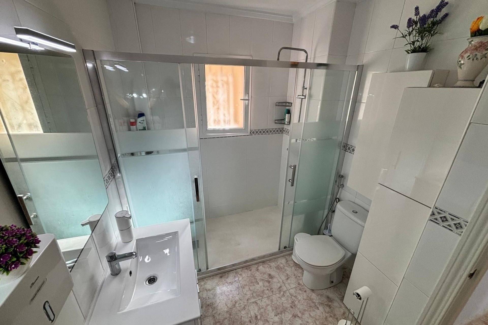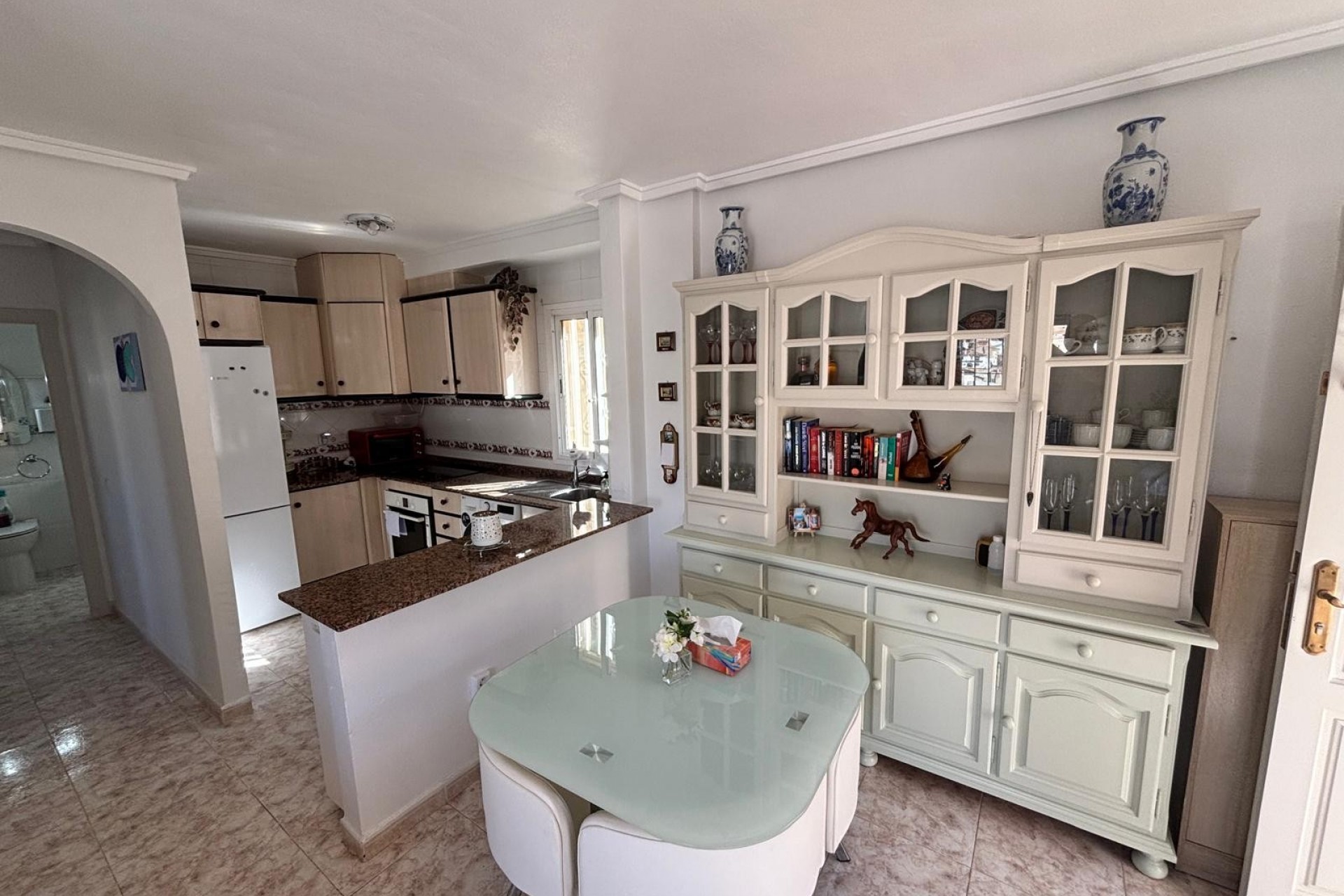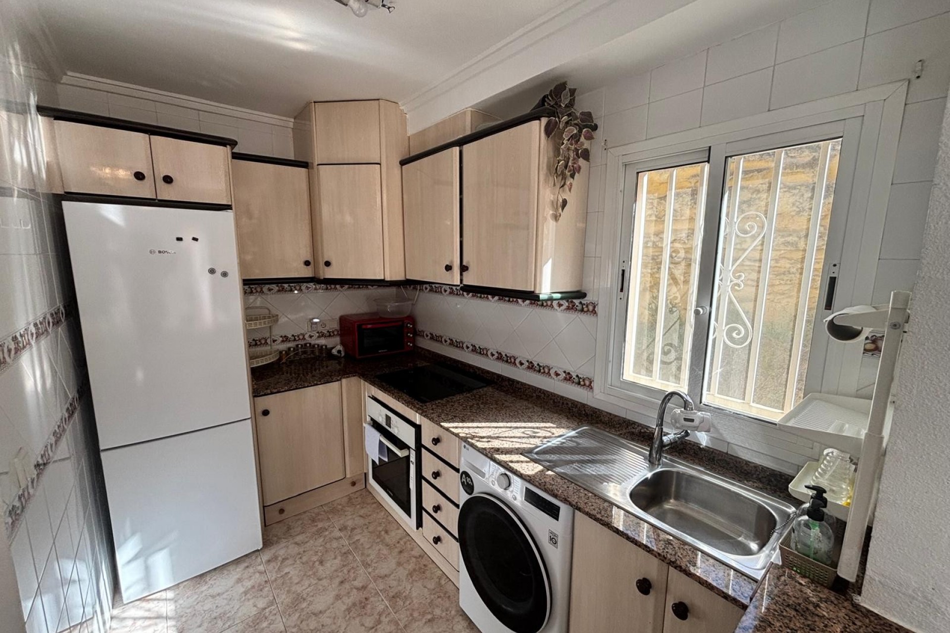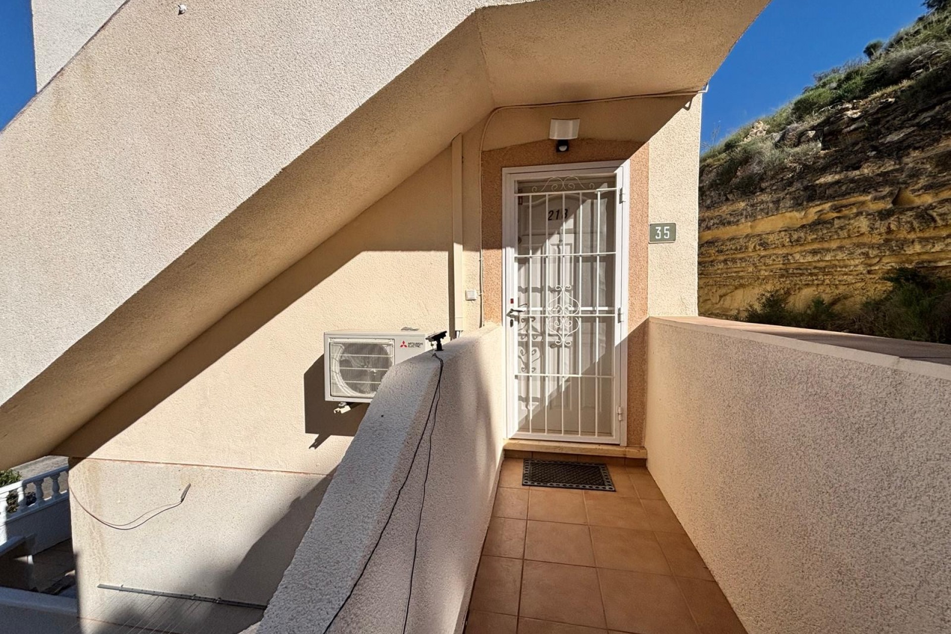 We are pleased to off this top floor buena vista style apartment with views towards the golf. The apartment offers 2 bedrooms and a shower room lounge and open plan kitchen. The front balcony with view’s leads to the private solarium which then has even better views there is also a storage room this was going to be converted by the current owners. The property is in very good condition includes air-con and fans and comes furnished. there is off street parking and a storage room , handy for bikes etc, The community pool is only a few minutes walk away.