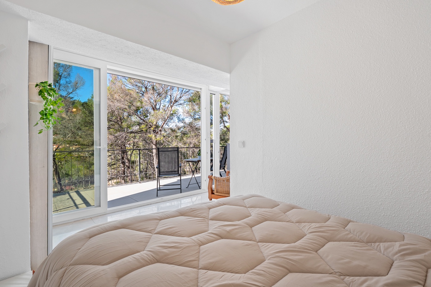 With over 60 built square meters, the apartment is distributed into an open-plan kitchen with breakfast bar and living room with stunning views of Mount Ponoig, two cozy bedrooms (a main bedroom connected to the living room and a secondary bedroom with a guest bed), a recently renovated bathroom finished to a high standard, a spacious terrace perfect for enjoying Ponoig’s beautiful sunsets or cooking a paella with family and friends, and an adjoining storage room ideal for suitcases or other belongings.