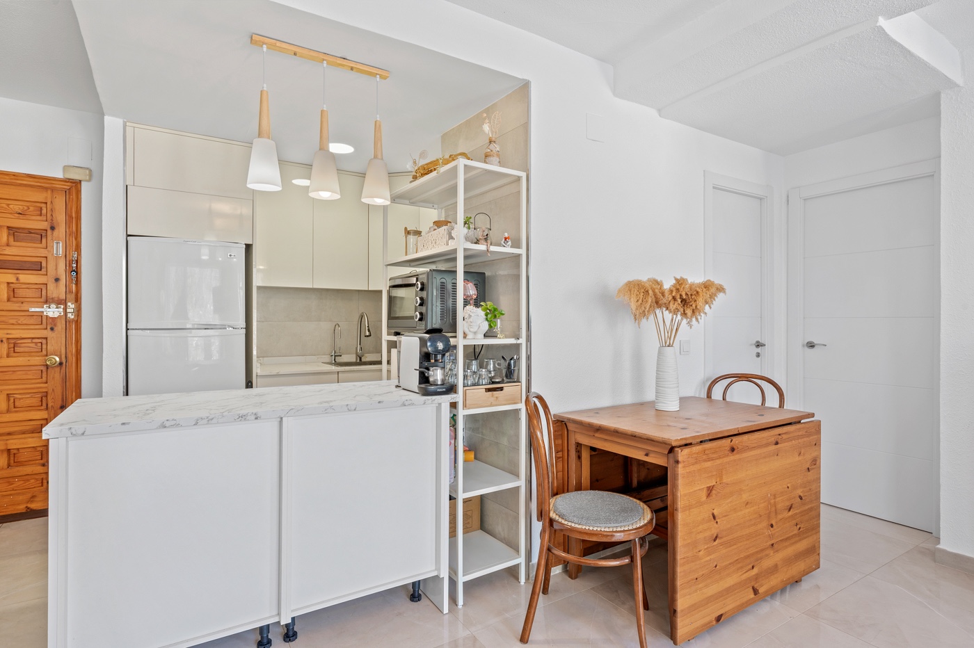With over 60 built square meters, the apartment is distributed into an open-plan kitchen with breakfast bar and living room with stunning views of Mount Ponoig, two cozy bedrooms (a main bedroom connected to the living room and a secondary bedroom with a guest bed), a recently renovated bathroom finished to a high standard, a spacious terrace perfect for enjoying Ponoig’s beautiful sunsets or cooking a paella with family and friends, and an adjoining storage room ideal for suitcases or other belongings.