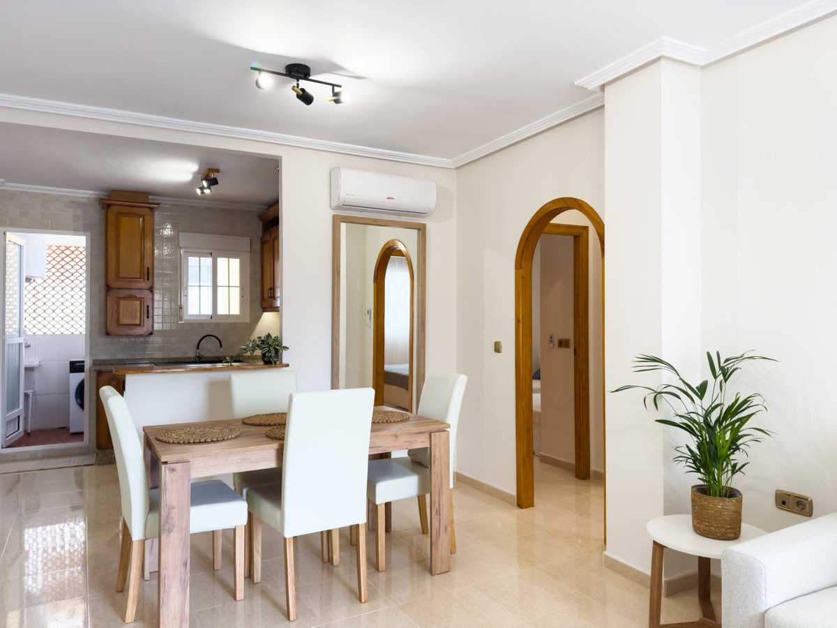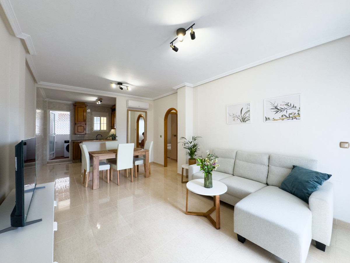 We present a bright and spacious apartment in a quiet, green area of Cabo Roig. Fully renovated in Scandinavian style, it comes fully furnished and ready to move in. The large sunny terrace offers relaxing views of the park, creating a sense of privacy and calm. Air conditioning ensures comfort all year round.The residential complex features a large swimming pool with relaxation areas for residents. Shops, cafés and restaurants are within walking distance, making everyday life convenient and easy. The sandy beaches are only 4 km away — ideal for those who appreciate peace but want to stay close to the sea.This apartment is perfect for permanent living, holidays or rental investment. Cabo Roig is known for its nature, developed infrastructure and safe, family-friendly environment. An excellent investment for a comfortable life in Spain.