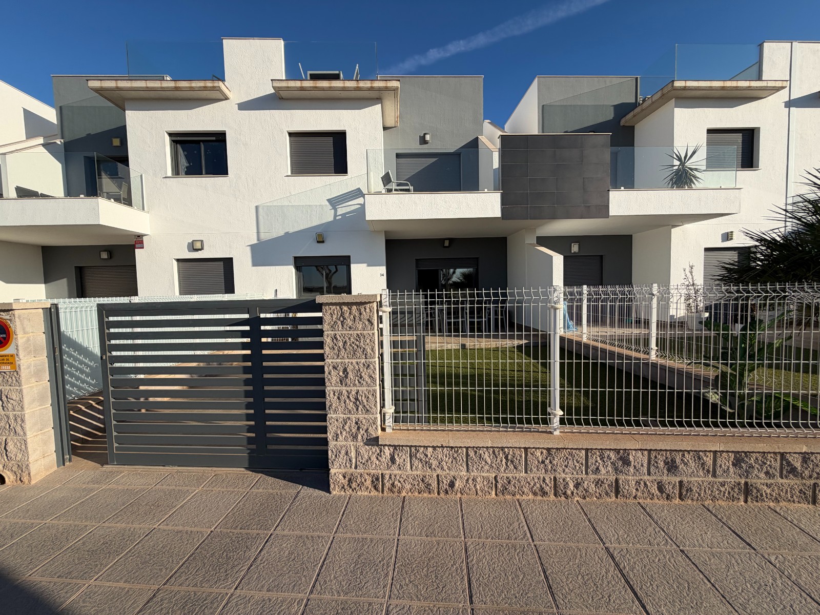 This Modern West Facing Ground Floor, Two Bedroom Apartment in Pilar de la Horadada is located in the beautiful Costa Blanca, offering a comfortable and stylish lifestyle just minutes from local amenities. Built in 2020, the property boasts a 70m² build on a 112m² plot, featuring two double bedrooms with air conditioning and free-standing wardrobes and a modern shower room. The open-plan kitchen flows seamlessly into the lounge, which is fitted with air conditioning and opens through double-glazed patio doors onto the private garden. The garden is partly tiled with artificial grass, providing a low-maintenance and relaxing outdoor space with peaceful countryside and private garden views. Residents can enjoy a communal pool, perfect for sunny days and the location is ideal—just a 10-minute walk to shops, bars and restaurants or only a 2-minute drive. The beach is also easily accessible, just a 3-minute drive (approximately 3km) combining convenience with the charm of coastal living in the Costa Blanca.