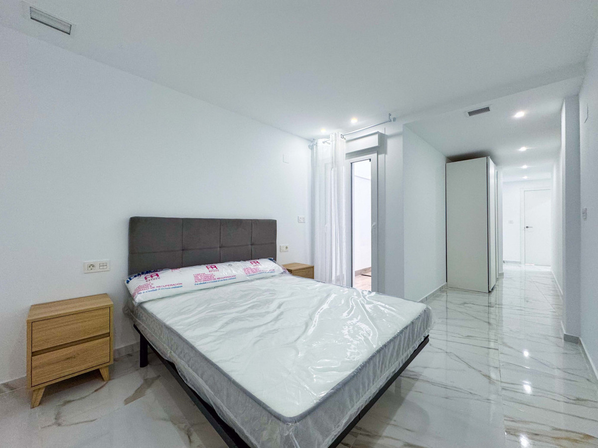 New 2-bedroom apartment located in the heart of Torrevieja featuring a private patio and communal solarium. Built just one year ago, this modern apartment is fully equipped with centralized air conditioning and underfloor heating in the bathrooms. Being on the first floor offers the advantage of a patio connecting the two bedrooms, enhancing natural light, ventilation, and storage possibilities. The layout includes two bedrooms, one en suite, and a comfortable living room perfect for daily living. The building offers a modern elevator and on the rooftop a solarium with sauna and barbecue area, ideal for social gatherings and relaxation. Nearby amenities include shopping centers, medical facilities, schools, parks, and supermarkets, which enhance convenience and lifestyle. This apartment is perfect for personal use or as an investment with excellent holiday rental potential. Request a virtual tour or floor plan and arrange a visit today.