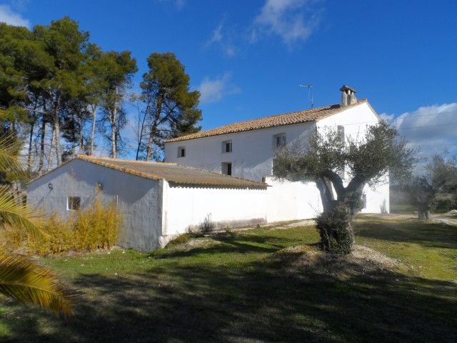 53.000m2 plot – 600m2 house – 2 bedrooms – 1 bathroom – 2 living rooms – kitchen – terrace – patio – garage – swimming pool – fireplace – 300m2 warehouse – water – electricity – irrigation water – 60 min to Alicante, the airport and the beach.