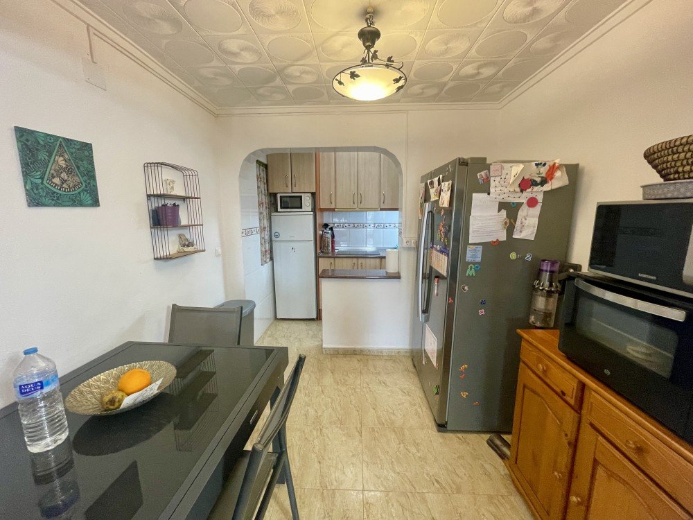 Located in the well-established and highly regarded residential area of Las Torretas III, this charming property offers an ideal combination of comfort, functionality and an excellent location, making it perfect as a permanent residence, holiday home or investment opportunity.The property features two well-proportioned bedrooms, designed to provide comfort and natural light, along with one fully equipped bathroom in excellent condition. A pleasant private terrace offers the perfect space to relax, enjoy outdoor dining or make the most of the Mediterranean climate all year round. The home also benefits from a storage room, ideal for additional space, and two private parking spaces, a valuable and uncommon feature in the area.The property forms part of a quiet and well-maintained residential complex with a communal swimming pool, providing an excellent setting for leisure and relaxation in a friendly and peaceful environment.In terms of location, the house is ideally positioned just 3 minutes by car from shops, supermarkets and restaurants, 5 minutes from Habaneras Shopping Centre, offering a wide range of leisure and retail options, and only 2 kilometres from the beautiful beaches of Torrevieja, well known for their quality, services and Mediterranean charm.Las Torretas III is a popular residential area appreciated for its спокой environment, good road connections and close proximity to all essential services. It is especially sought after by both national and international residents who value quality of life, sunshine and easy access to the coast without sacrificing everyday convenience.An excellent opportunity to acquire a comfortable and well-located property in one of Torrevieja’s most practical and desirable areas!!