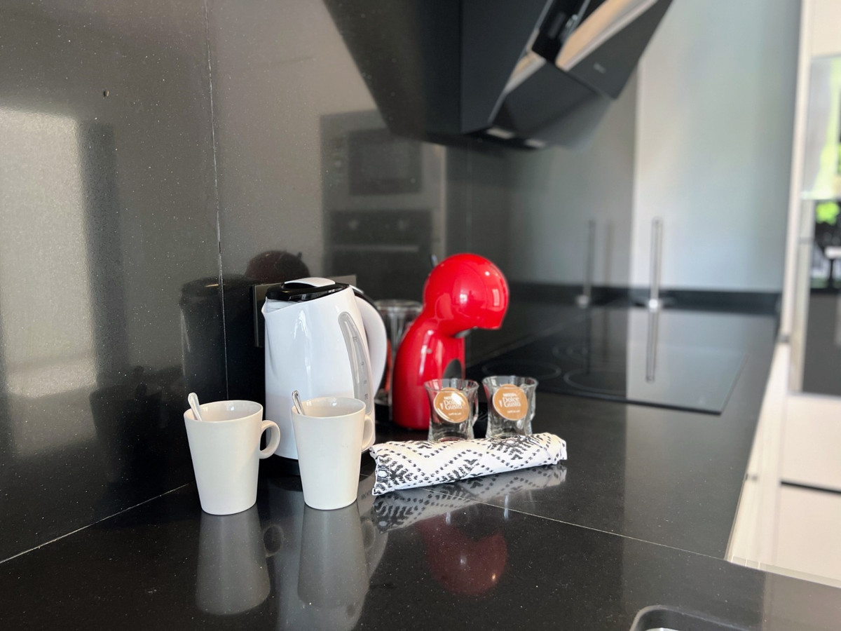 This beautiful ground floor apartment in Amanecer VI, Los Altos offers the perfect combination of modern style and comfort. With 2 spacious bedrooms and 2 stylish, modern bathrooms, it has been designed for comfortable living. The fully equipped kitchen is perfect for preparing your favorite meals, and the open floor plan creates a sense of space and light throughout the home. Step into your own spacious outdoor area with two luxurious lounge suites. This space is perfect for entertaining guests, enjoying quiet evenings or soaking up the sun. The apartment's outdoor area feels like an extension of the living area, which enables seamless indoor and outdoor living. The highlight is the communal pool, which is surrounded by swaying palm trees and creates a tranquil resort atmosphere. Whether you're taking a refreshing swim or relaxing by the pool, there's a relaxing retreat right outside your door. Amanecer VI is located in a quiet area of Los Altos, but close to all the amenities you need, including shops, restaurants and beautiful beaches. This apartment is a fantastic option for those looking for a modern and stylish house in a sunny and quiet area.