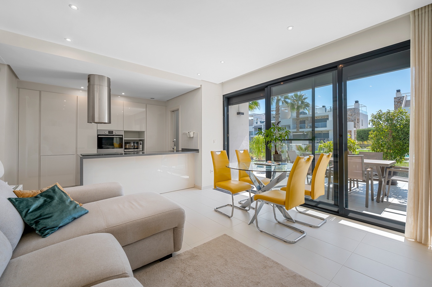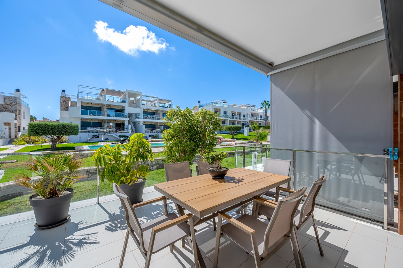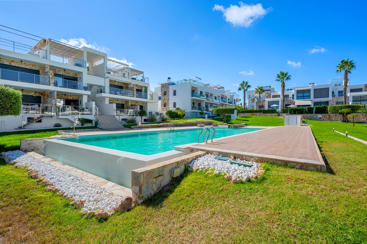 2 Spacious Bedrooms & 2 Stylish Bathrooms: The master bedroom features an en-suite bathroom for ultimate privacy, while the second bedroom is perfect for guests or family. Both bathrooms are designed with contemporary fixtures and finishes.Community Garden Areas: Enjoy the lush, well-maintained garden spaces right at your doorstep, offering a peaceful retreat to relax or unwind amidst the beautiful Mediterranean climate.Swimming Pool: Take a refreshing dip in the large communal swimming pool, surrounded by a sun terrace perfect for lounging or enjoying the sunshine.Underground Garage & Storage Room: Secure, underground parking is available for your convenience, along with an additional storage room to keep your belongings safe and organized.Prime Location: Situated just minutes away from the stunning beaches of Orihuela Costa, you can easily stroll to the sea and enjoy the sun, sand, and sea breeze. Golf enthusiasts will appreciate the proximity to top-tier golf courses, while the lively La Zenia Boulevard offers a range of shops, restaurants, cafes, and entertainment options.