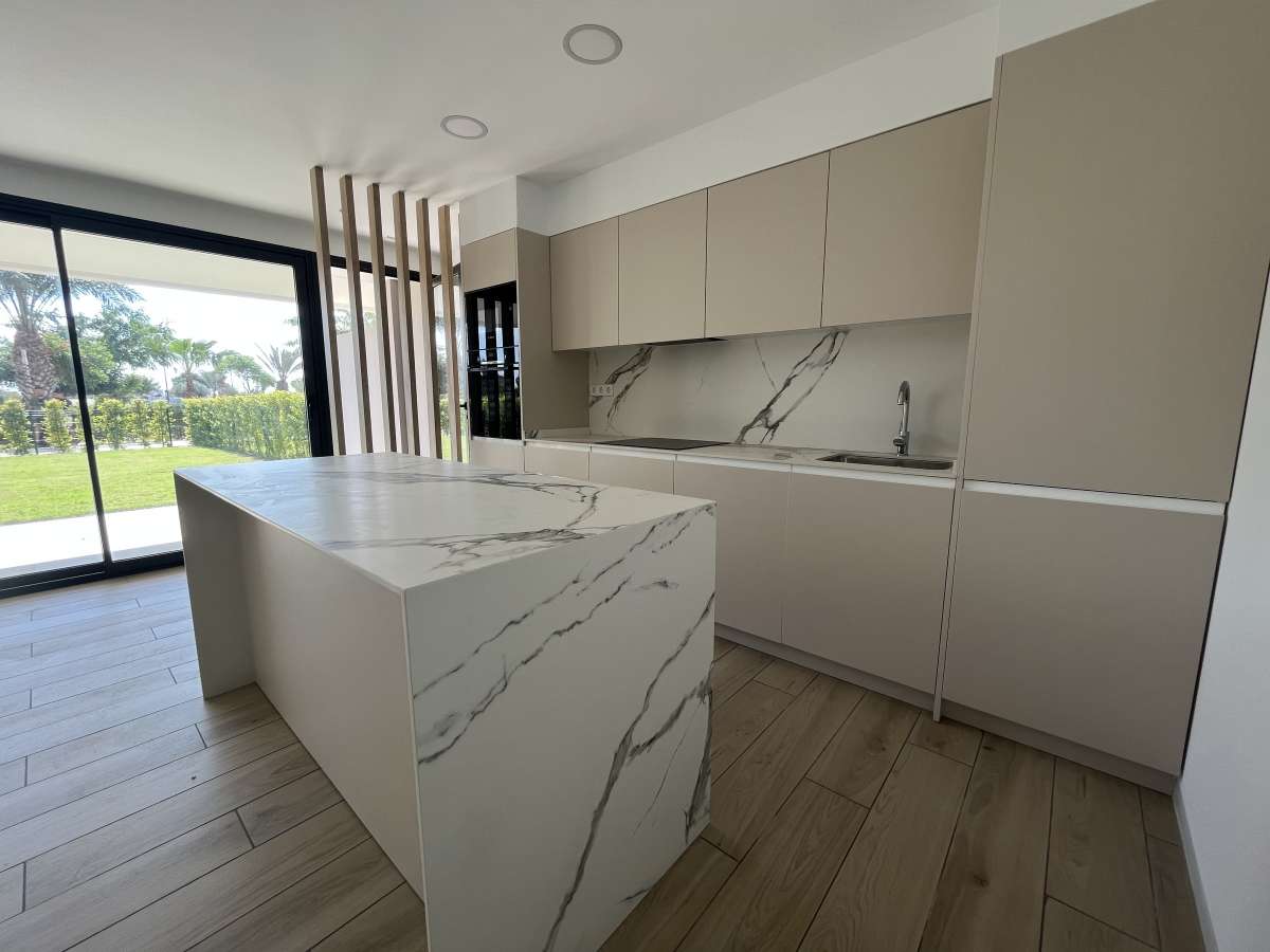 You can immediately enjoy this property in this unique location! The new phases you have to wait at least another year before they are finished so don’t miss this opportunity and book a viewing.Santa Rosalia Lake & Life Resort, the newest and most comprehensive resort complex under development in the Murcia region, embodies a whole new concept of a resort in Spain. The resort is characterised by a beautiful ‘Crystal Lagoon’ that forms the centre, complete with islands and artificial beaches. Here you will find numerous amenities, including a picnic area, hiking trails, a Beach Club, disc golf, adventure golf, a yoga area, petanque and a multi-sports court. With 4,000 trees and a green area of 124,000 square metres, the resort is an oasis of relaxation. However, the absolute highlight is the crystal-clear lagoon, where you can sunbathe, swim, paddleboard or kayak. The resort enjoys an ideal location in relation to no less than 17 local golf courses, making it a paradise for golf lovers. In addition, it is just a short drive from the vibrant Spanish town of Los Alcazares, with its beautiful sandy beaches and a wide range of bars, restaurants and shops. Murcia’s new international airport in Corvera Murcia is just a 25-minute drive away, while Alicante airport is just under an hour’s drive. This makes travelling to and from the resort very easy and accessible.