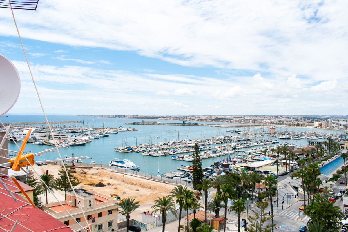 Discover this wonderful 105 m² apartment in the heart of Torrevieja , located in one of the city's most sought-after areas. Situated on the first floor , this property boasts impressive panoramic views of the sea and the port , offering a privileged setting just 100 meters from the harbor and a 4-minute walk from the beach . The property features two spacious bedrooms and two full bathrooms , including an elegant en-suite bathroom in the master bedroom. The living-dining room is spacious and bright, ideal for enjoying time with family or entertaining guests. The kitchen , equipped with top-quality materials , combines design and functionality, while air conditioning ensures maximum comfort year-round. Furthermore, the communal rooftop terrace offers an unparalleled space to relax while enjoying views of the Mediterranean . Surrounded by exclusive establishments such as El Muelle restaurant, Nicky Beach, and Bacanal , this property represents a unique opportunity for those seeking lifestyle, location, and exclusivity. Ideal as a permanent residence or investment in one of the most dynamic areas of the Costa Blanca .