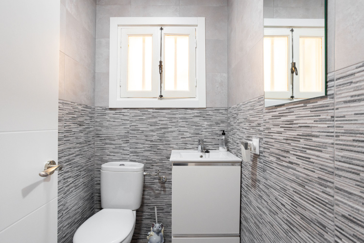 Newly renovated and homely with two patios, balcony and roof terrace near the sea and beach A warm welcome to this newly renovated and stylish townhouse with an attractive location in the pleasant area of Rosaleda on the southern Costa Blanca. Here you live close to fine beaches and beautiful cliffs while having shops, restaurants and cafes at a comfortable distance. Torrevieja has good bus connections. For those interested in golf, there are several well-known and well-maintained golf courses a short drive away.