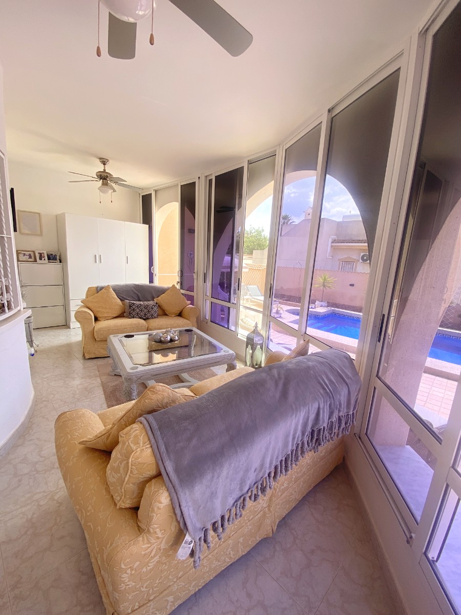 This villa offers a spacious, bright, 2 bedroom, 2 bathroom accommodation, large open kitchen diner with arched access to a snug lounge complete with a feature fire place. An archway from the dining area leads to a corridor with access to a large visitors bedroom, family bathroom and master bedroom complete with ensuite.
