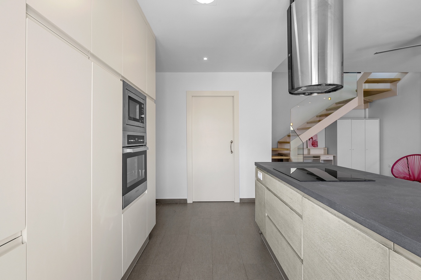 On the ground floor, the villa offers a modern and functional design with an open-plan kitchen fully integrated into a spacious and bright living room, creating an ideal space for everyday living and entertaining guests. There is also a full bathroom on this floor.