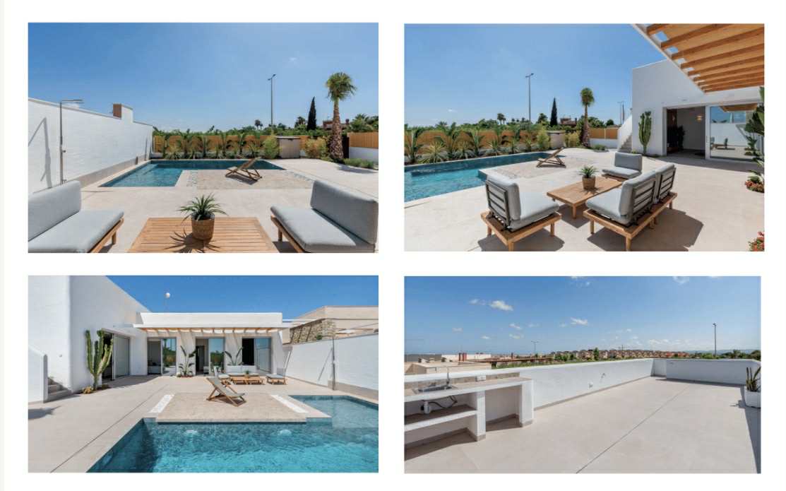 This exclusive boutique project consists of only 6 single-level new-build villas featuring elegant Ibiza-style architecture, located in a quiet residential area close to the center of Dolores (Alicante). All essential amenities such as shops, restaurants, and medical services are within walking distance.Each villa offers an open-plan kitchen, a bright living and dining area, 3 bedrooms, and 2 bathrooms. Outside, you can enjoy a private plot with terrace, landscaped garden, and private swimming pool, as well as on-site parking (except for 2 properties). The spacious private terrace offers open views and is perfect for enjoying the Mediterranean climate all year round.The homes are finished with modern materials and include electric shutters, indoor and outdoor lighting, fully fitted bathrooms, an energy-efficient aerothermal system, and pre-installation for air conditioning.Thanks to its excellent location, the beaches of Guardamar and Torrevieja are only 12 km away, several golf courses are within 10–15 km, and Alicante Airport is approximately 25 minutes by car.