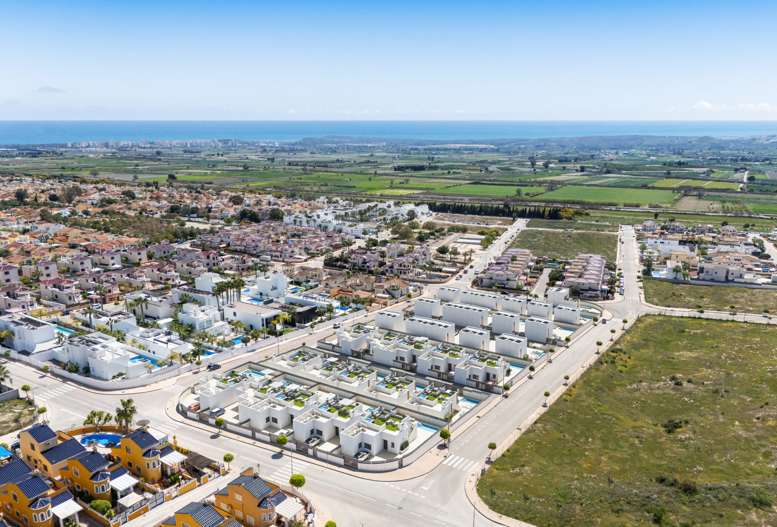 JL Morales Real Estate is delighted to present Natura Park IV, an exciting new development in the heart of Urb.La Marina, featuring an exclusive collection of 15 contemporary villas designed for comfort, style, and Mediterranean living.Each villa is set on a private plot ranging from 240 to 330 m², offering generous outdoor space and a high level of privacy. The homes are built on one level with a constructed area of 99 m², and feature a bright open-plan living and dining area with a modern kitchen, three spacious bedrooms with fitted wardrobes, and two stylish bathrooms, one of which is en-suite to the master bedroom.A standout feature is the impressive private rooftop solarium of approximately 90 m², perfect for al fresco dining, sunbathing, entertaining guests, or unwinding in the jacuzzi. Every villa comes fully equipped with a private swimming pool, solar panels, ducted air conditioning, LED lighting, electric shutters, and shower screens in all bathrooms, all included as standard.Natura Park IV enjoys an excellent location close to supermarkets, shops, and a wide selection of restaurants. Just a short drive away are beautiful sandy beaches such as La Marina and Guardamar del Segura, several golf courses, major shopping centres, and the vibrant cities of Alicante and Torrevieja.