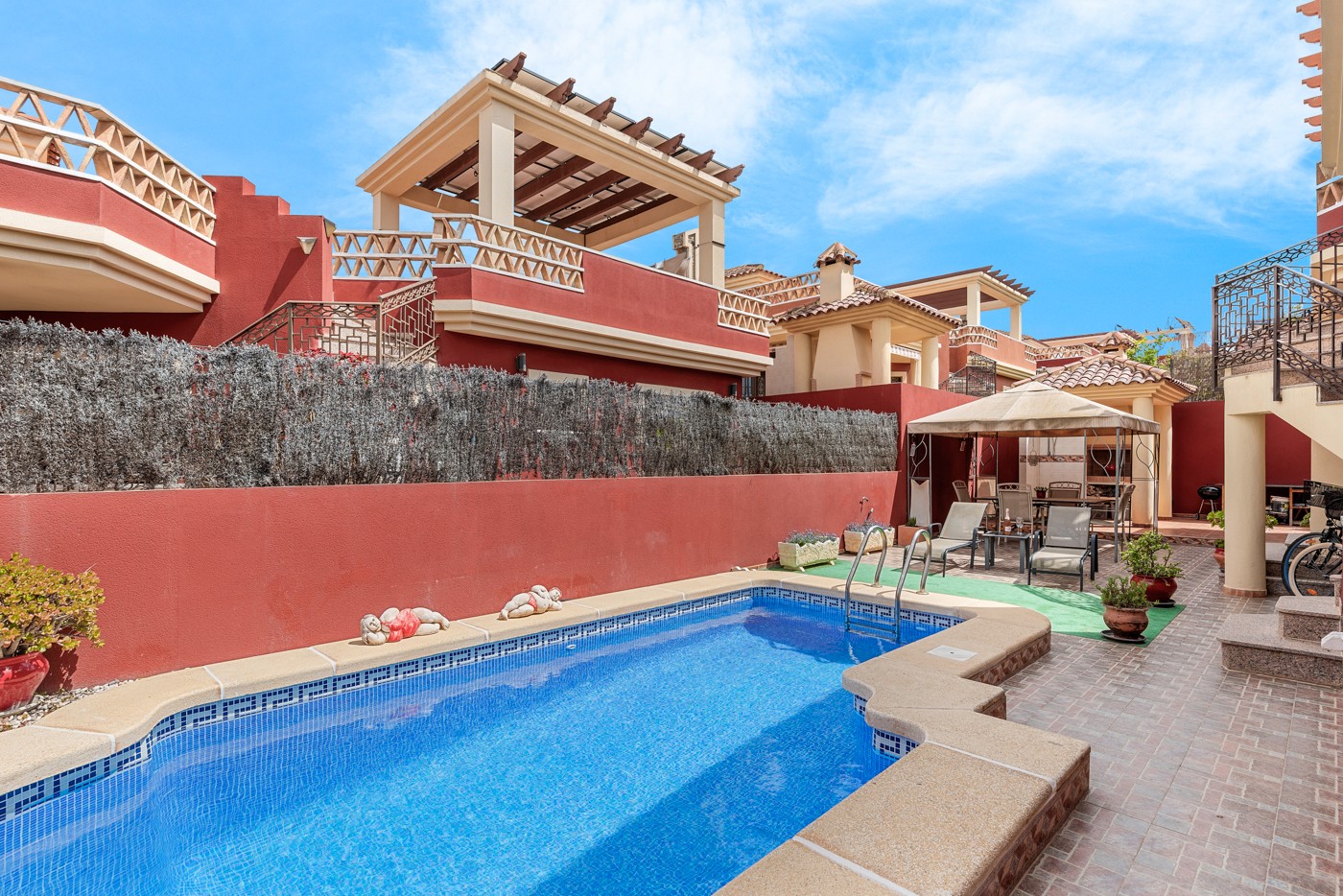 This charming southwest-facing villa is located in the peaceful area of Lo Crispín, just on the outskirts of Ciudad Quesada. It features 3 spacious bedrooms, 2 bathrooms, a private pool og 8x3m, and a built-in terrace perfect for relaxing or entertaining. Enjoy year-round sunshine on the private solarium that also have water and electricity. The home is within walking distance to restaurants and bars, making it ideally situated for both quiet living and convenience.