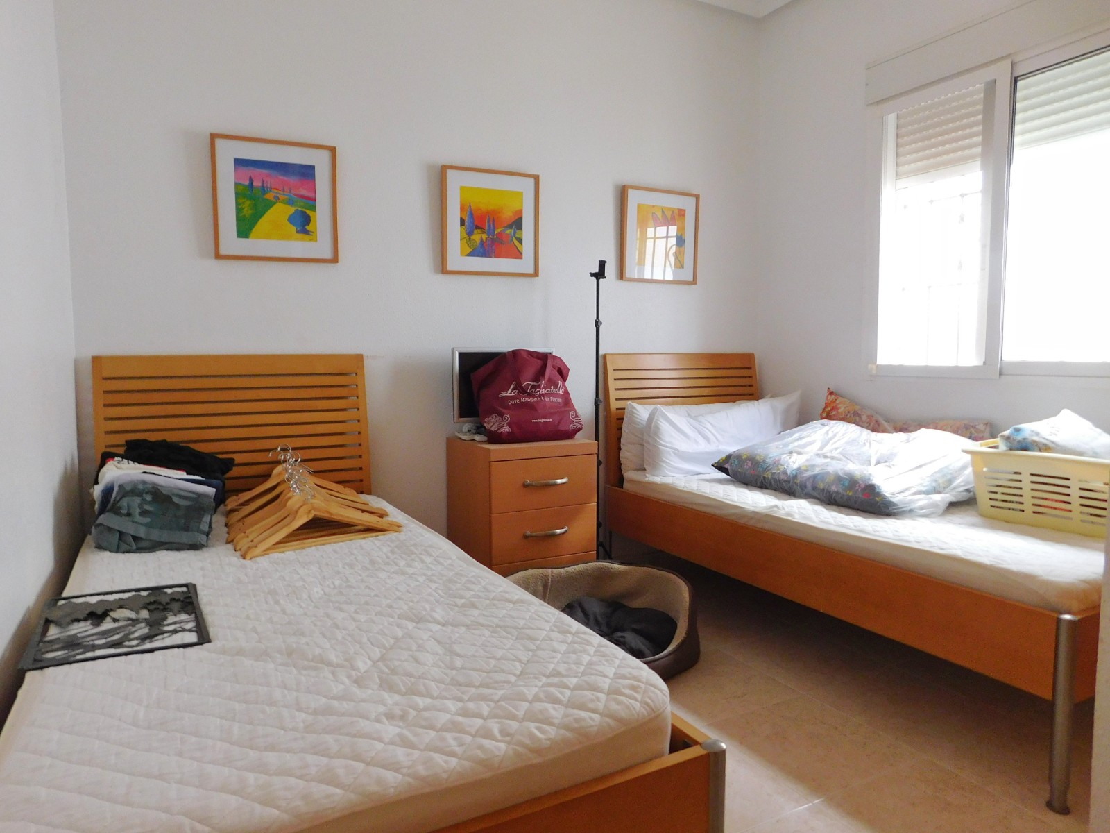 A brief description of the property: this villa benefits from being all on one level. Having an extraordinarily large living – dining room with a feature fireplace in the middle. Leading to an independent kitchen being fully equipped. From the living room you have 3 good sized bedrooms all with built in wardrobes and 2 bathrooms. One an en-suite to the master. The garden comes easy to maintain with some mature trees and tiled areas for relaxing in, while being seated around the sun-drenched private swimming pool. Having air-conditioned throughout, mosquito nets and connected to mains gas supply if you wish to install radiators.