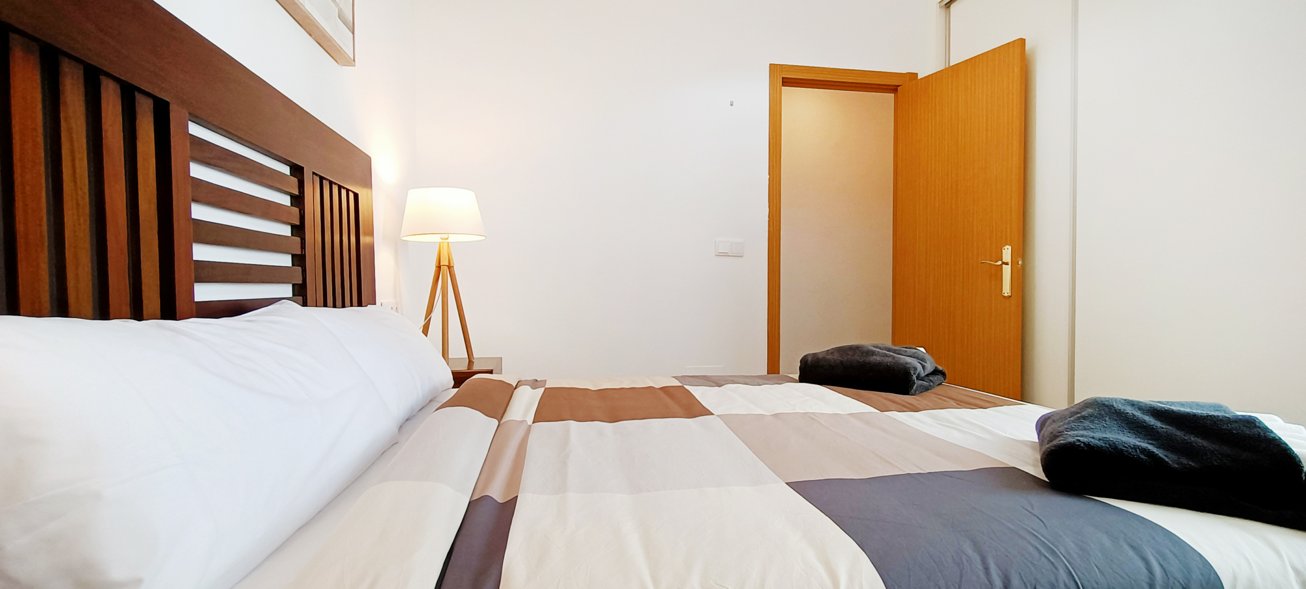 Master bedroom with built-in wardrobe, terrace access, and well-sized en-suite bathroom