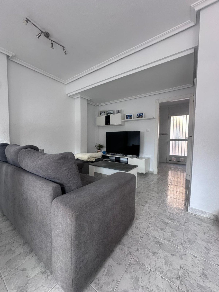 Discover your new home in the beautiful area of Los Frutales, Torrevieja! This charming semi-detached villa offers a life of comfort and style. With 105 m² of built area and 99 m² of usable area, this property is ready to move into. Enjoy its 2 double bedrooms and 1 single bedroom, perfect for the whole family, as well as 2 full bathrooms and an additional toilet. The fully equipped kitchen is ideal for food lovers, while air conditioning and heating ensure your comfort year-round. The southeast orientation fills every corner with natural light, creating a cozy and bright atmosphere. Relax on the spacious 25 m² terrace or in the sunroom, and host unforgettable barbecues in the private garden. The development has a communal pool and children’s play areas, perfect for enjoying with the little ones. The property is also close to buses, schools, parks, supermarkets, and the coast, offering an unbeatable location. With unobstructed views and a garage included, this house is an opportunity you can’t pass up. Come visit and fall in love with your future home!