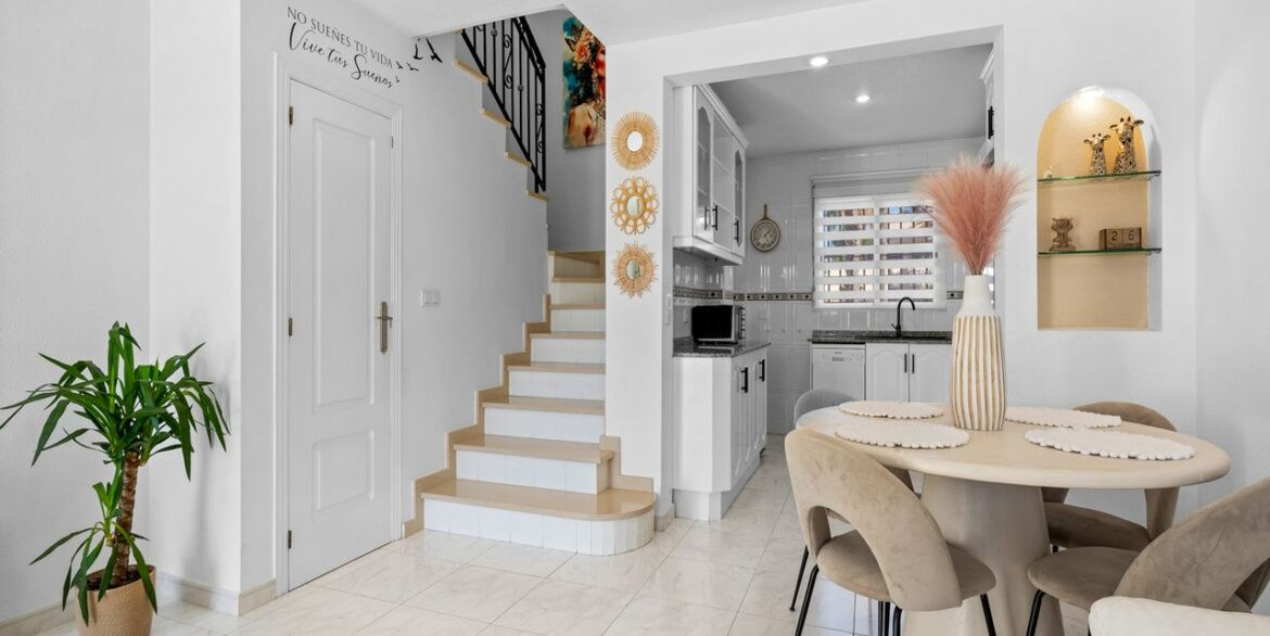 Benimar offers a vibrant social scene, especially in the summer months, with a wide choice of restaurants and cafés serving international cuisine. Walking distance to AquaPark Rojales, close to local golf courses and shopping centres, approximately 15 minutes by car to the golden beaches of Guardamar del Segura and Torrevieja, near the stunning Parque Natural de las Lagunas de La Mata y Torrevieja — perfect for cycling and nature lovers