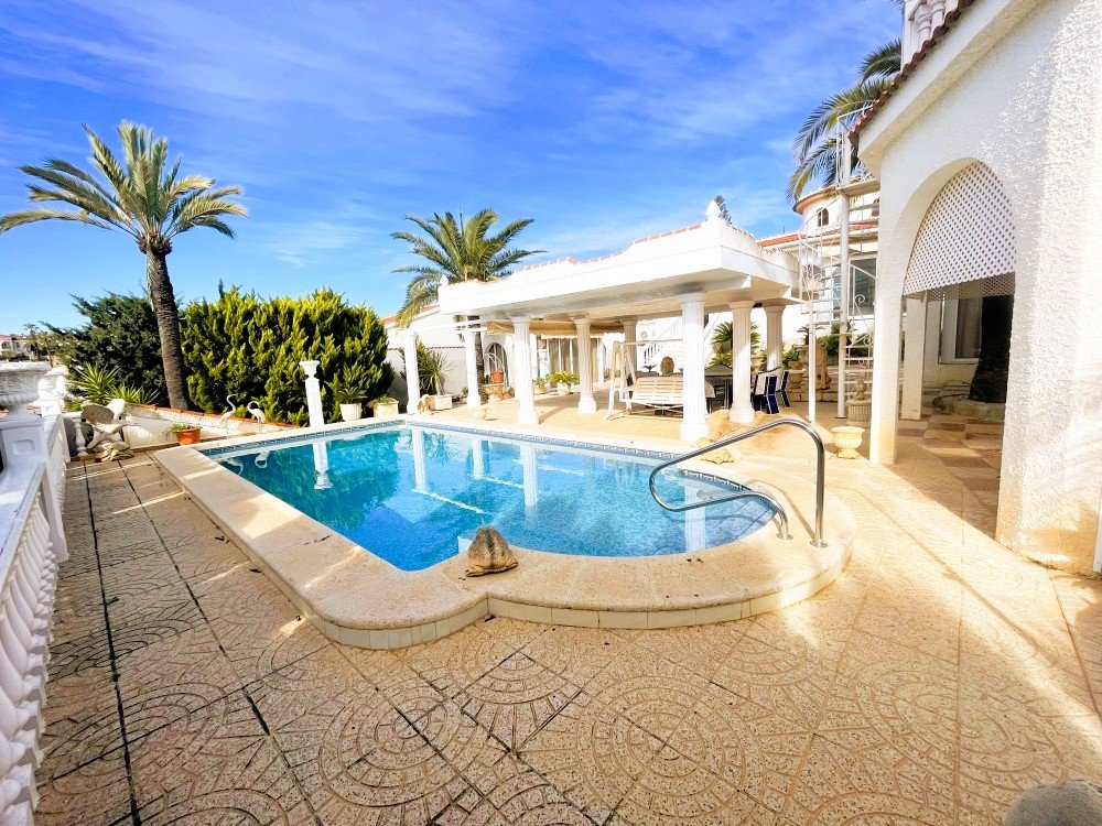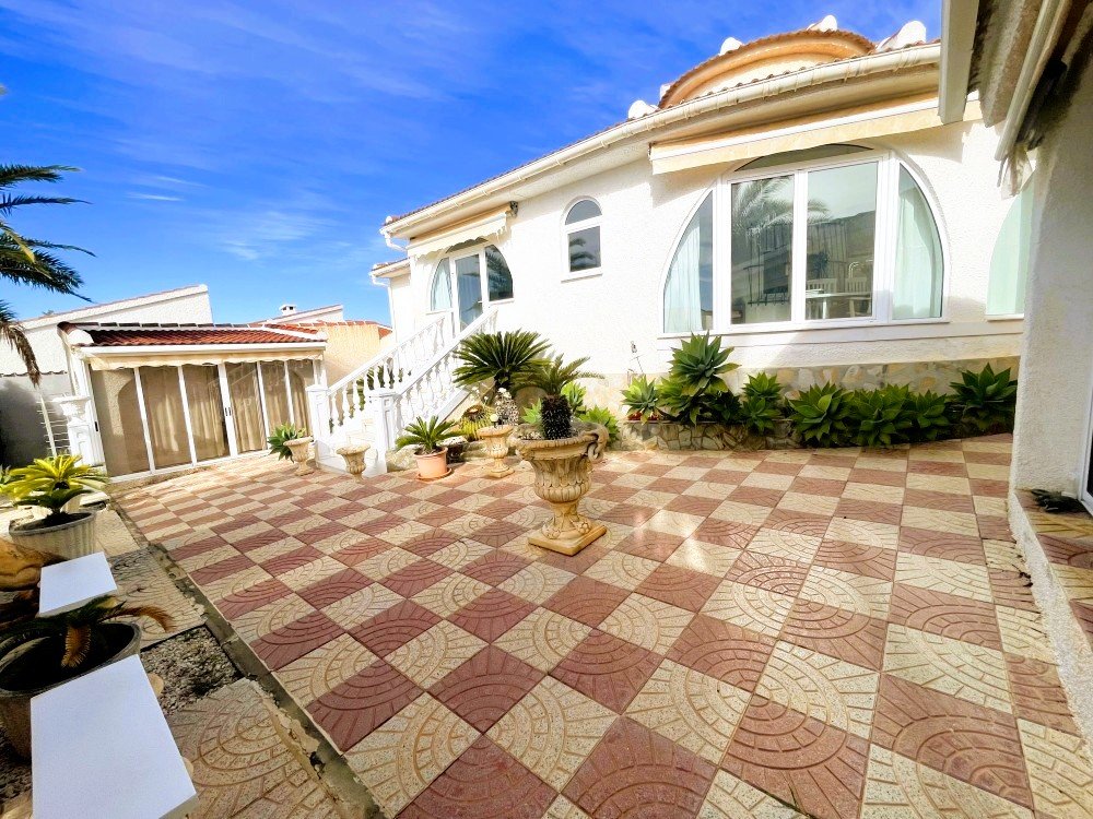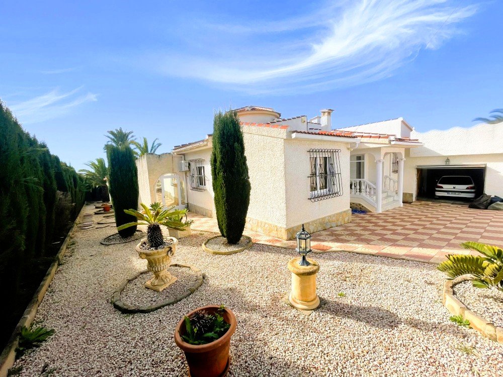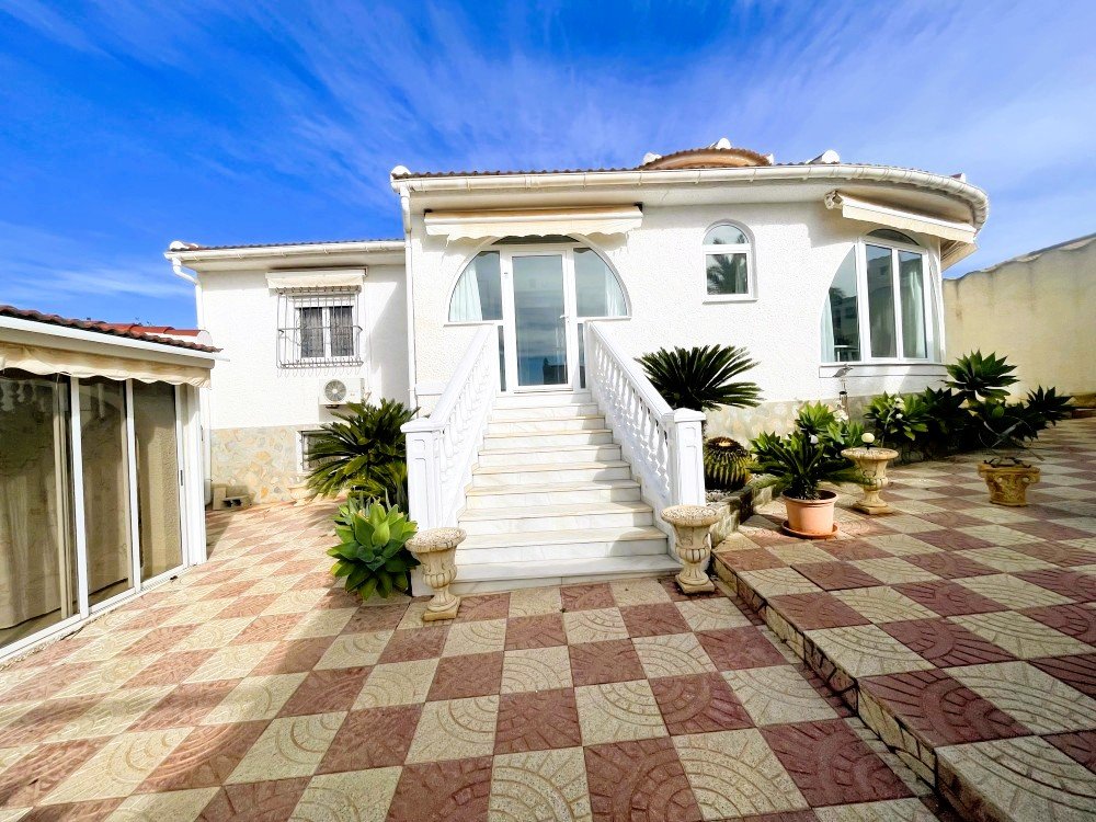 We are delighted to present this charming detached villa, ideally located in a peaceful residential area of Ciudad Quesada, Rojales, just a short distance from a wide selection of bars, restaurants, shops, gyms, the AP-7 motorway and all essential amenities.Set on a generous 1,000 m² plot with approximately 200 m² of built area, the property offers spacious and versatile accommodation. The villa features three bedrooms and two bathrooms, including a master bedroom with en-suite bathroom, a large and bright open-plan living and dining area, and a fully equipped independent kitchen. Adjacent to the kitchen is an additional room that can be adapted for various uses such as a utility room, office or extra living space.Outside, the property boasts a private 8 × 5 metre swimming pool, outdoor kitchen, storage room and extensive garden areas with stunning views towards the surrounding landscape and the salt lakes. A covered terrace provides an ideal space for relaxing or entertaining while enjoying the scenery.Additional highlights include a garage with rooftop solarium, two large multipurpose rooms suitable for a gym, guest accommodation, office or workspace, and a substantial basement offering excellent storage capacity.The property benefits from air conditioning and oil-fired central heating radiators, ensuring comfort throughout the year.This villa offers excellent potential as a permanent residence, holiday home or investment property.
