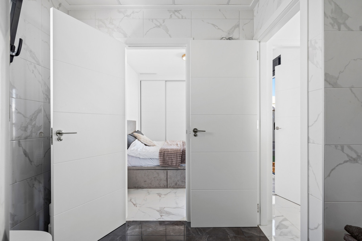 Welcome to our newest exclusive listing in La Herrada, Los Montesinos. Costa Blanca, Spain!The first thing to note about this beautiful & well maintained property is that it is the perfect choice for someone who wants the beauty and quality of a new build property but without the wait for one to be built. It is a fantastic 3 floor villa with 3 bedrooms and 2 bathrooms and with a nice outside space, and it is sold as seen. With all furniture included. The best start to owning a beautiful Spanish home is to own a modern home that is ready to go!New Build villa with 3 bedrooms and 2 bathrooms, open plan kitchen with living room-dining room. Special about this property is that the living room area is extra large! This villa has a bigger living room without losing any useful space for the rest of the house! The open kitchen is very practical and comfortable. It includes a large island that unites the entire space and helps you create a very spacious, large room, in which you can create different environments: a formal dining room to receive your guests, a very homely living area with some bohemian details, a little corner with some games for the children….The large windows of this wonderful room fill the house with the warm light of the Mediterranean and unite the interior with the terrace and the garden, and, above all, with the pool. A true oasis where you will spend the days and nights, having fun, laughing and enjoying with yours. The villa has a private swimming pool from 7x3M with a built in waterfall. There is also the possibility to park your car on your own property driveway. On the second floor are 2 bedrooms, one of the bedrooms is the master suite, with a private bathroom, is spacious, comfortable and intimate, and offers fantastic views. You also have direct access from both bedrooms to the terrace. In addition you have a magnificent solarium that will be your private paradise, your private corner where you can disconnect and relax as you deserve.The typical town of Los Montesinos is strategically located 10 minutes by car from the beaches and leisure of Torrevieja (with all the services of a big city: theatre, 2 hospitals, international schools, etc.), from several golf courses and with easy access to the A7 highway to reach Alicante airport in 35 min.In the urbanization there are supermarkets and bars for day-to-day service, being a rural and quiet environment. The climate in this area guarantees 300 days of sunshine a year with an average temperature of 20ºC, which, together with the rich gastronomy and cultural and sports activities available in its surroundings, makes this area an ideal place to establish a second residence for vacation or a quiet place to live permanently.