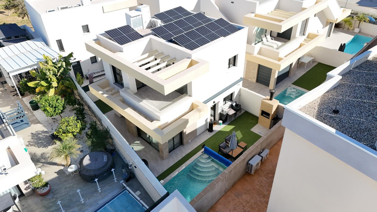 Discover this spectacular detached villa with a contemporary design, built just 3 years ago, located in a quiet residential area a few minutes from the charming village of Los Montesinos, on the Costa Blanca. A home that combines comfort, energy efficiency, and spaces designed to enjoy the Mediterranean lifestyle.