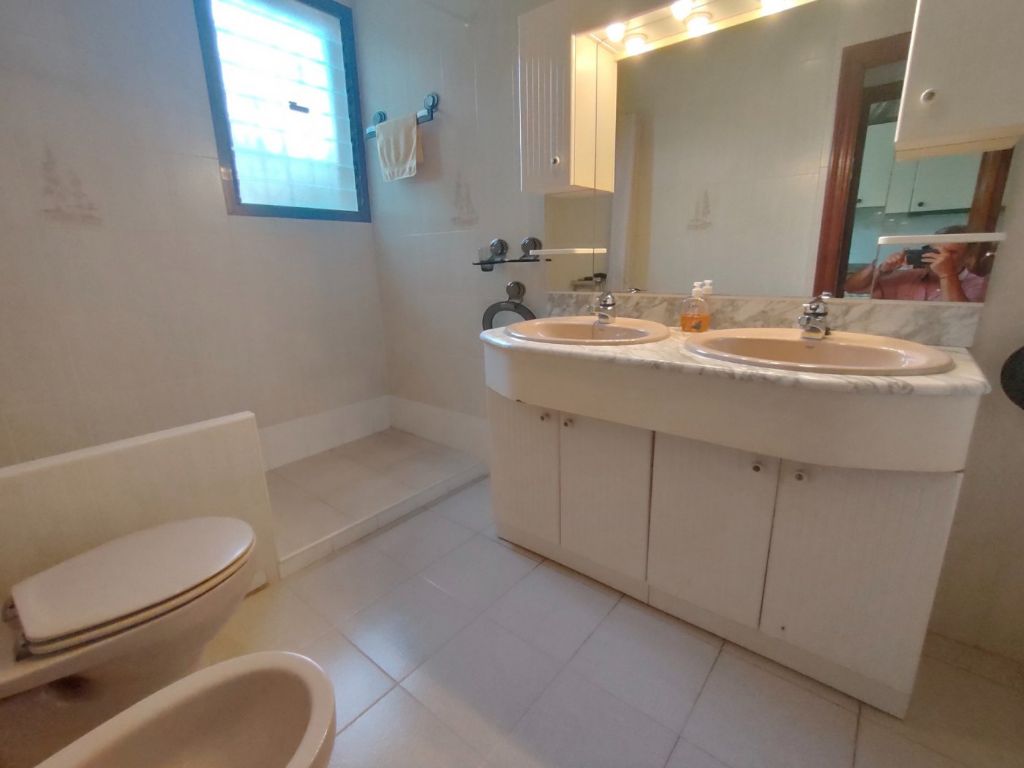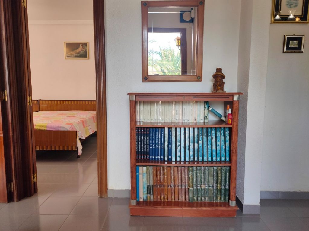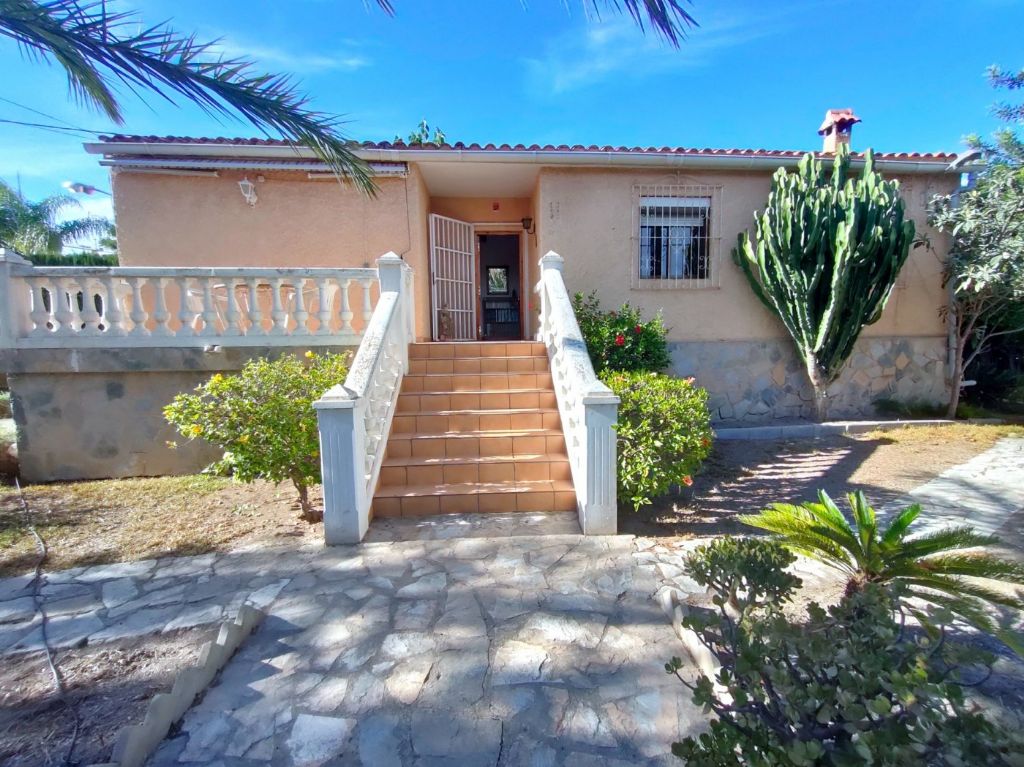 Beautiful house in exclusive area of San Juan (Alicante) The house has 150m2, 3 bedrooms, 2 bathrooms, living room, central heating and 15m2 terrace. It has 720m2 of fenced plot, swimming pool (to reform), barbecue with bathroom and kitchen independent of the house and garden. The location of the house is 1 minute from the beach, 3 minutes from the city and 15 minutes from the airport. If you have any questions, contact us.