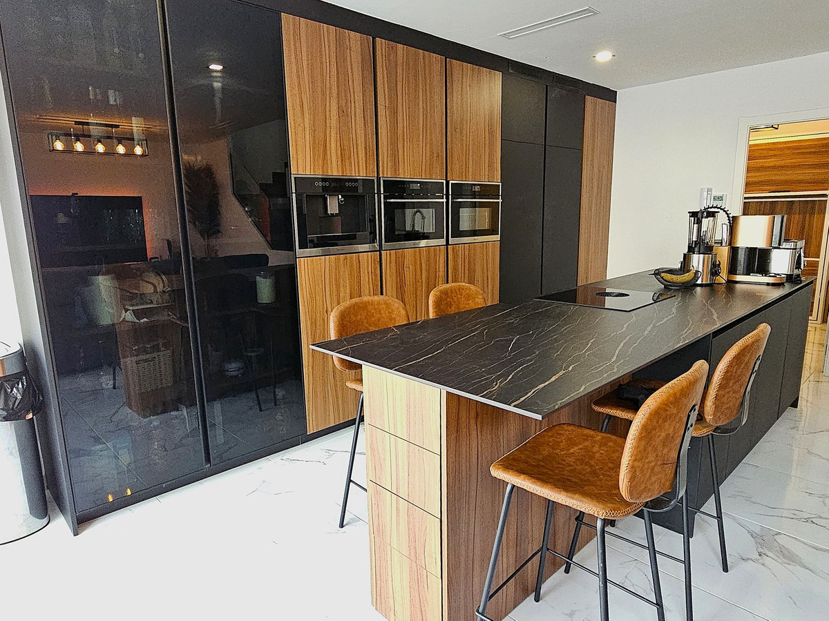 Fully customized kitchen with island, integrated microwave, oven, coffee maker, dishwasher, induction with extractor, American fridge and freezer