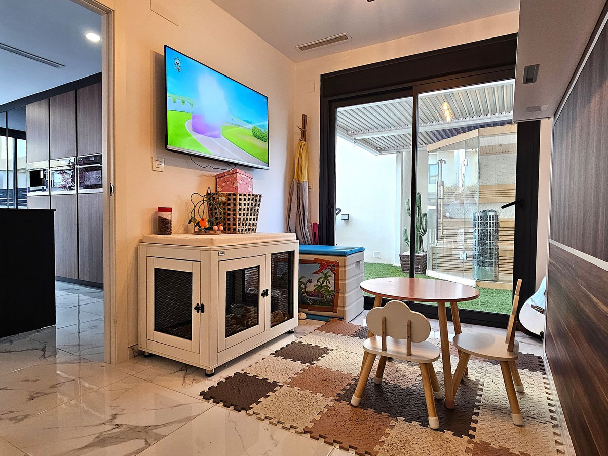 Fully furnished: 85-inch OLED TV, TV in each bedroom, TV cabinet, Bose sound system, sofa, exterior salon, sunbeds, high dining table, exterior bed, living room table that matches the kitchen, vertical folding bed, master bedroom, smart boiler, integrated air conditioning for each floor