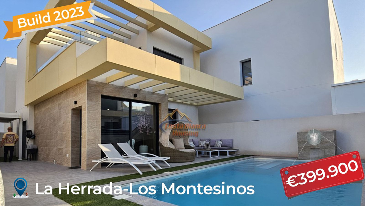 Fully furnished villa fully equiped ready to move into with all hi tech features with 3 bedrooms and 2 bathrooms, 1 Toilet Preinstalation where Laundryroom is built in 2023 located in Los Montesinos, La Herrada.