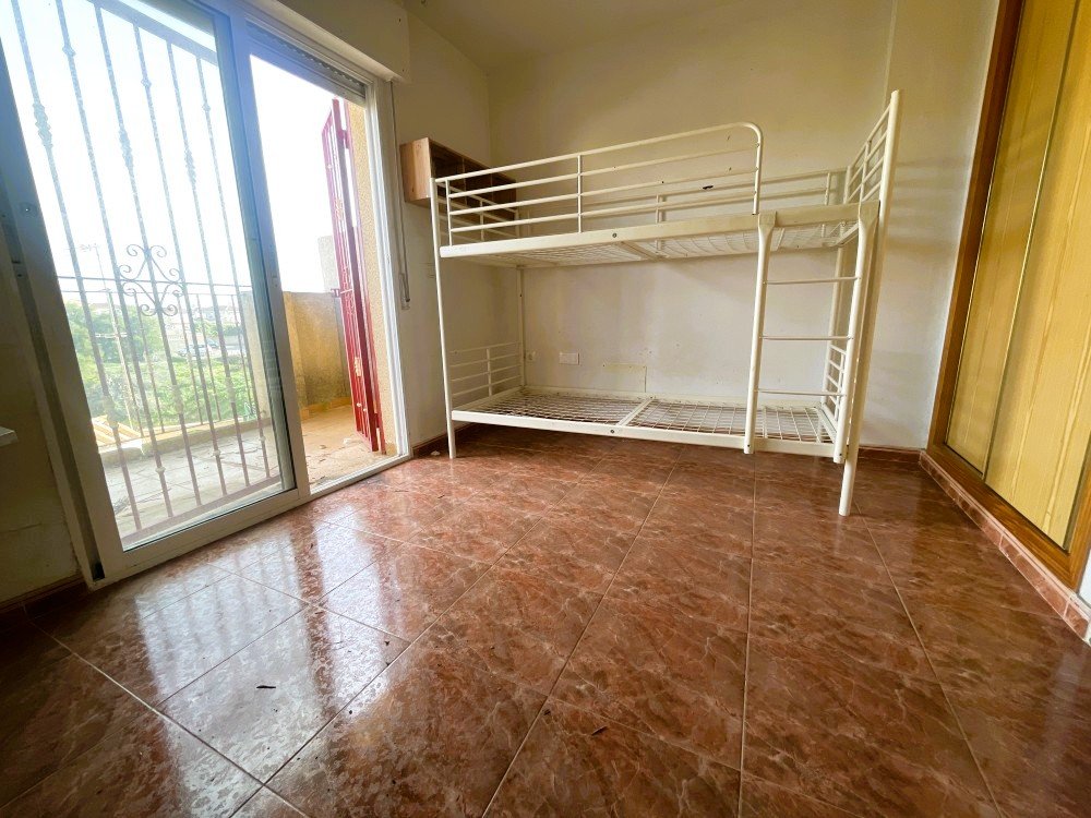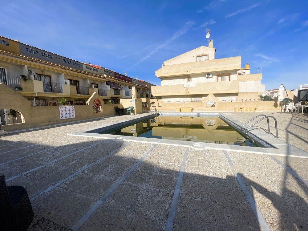 We present this townhouse located in Orihuela Costa, in a highly convenient area, just 5 minutes by car from Zenia Boulevard shopping centre and approximately 20 minutes’ walk from a wide selection of bars, restaurants, shops and the beach.The property is arranged over three levels and forms part of a residential community with excellent communal facilities, including an outdoor swimming pool for the summer months and a heated indoor pool for year-round use.The townhouse offers great potential, although it requires a full renovation, making it an ideal opportunity for buyers looking to create a home tailored to their own taste.On the main level, there is a charming terrace, perfect for outdoor dining and enjoying the peaceful surroundings. Inside, the property features a living-dining room, a separate kitchen, and a patio area with a bathroom.The second floor comprises two bedrooms and a fully fitted bathroom with double washbasins.On the top floor, there is a third bedroom with an en-suite bathroom and access to a private terrace with sea views.The property does not include a private parking space.A property with excellent potential, suitable as a permanent residence, holiday home or investment.Contact us to explore the possibilities this property has to offer.
