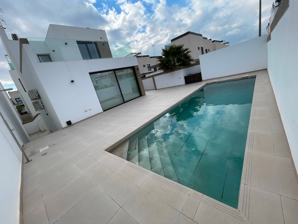 This modern and stylish three-bedroom villa in Benijofar, built in 2022, is centrally located, only 12 minutes from the beaches. The villa comes with numerous extras, such as fitted wardrobes, air conditioning throughout, electric blinds, an aerothermic system, a private pool, parking, a motorized gate, internal and external lighting, a finished underbuild, and white goods.