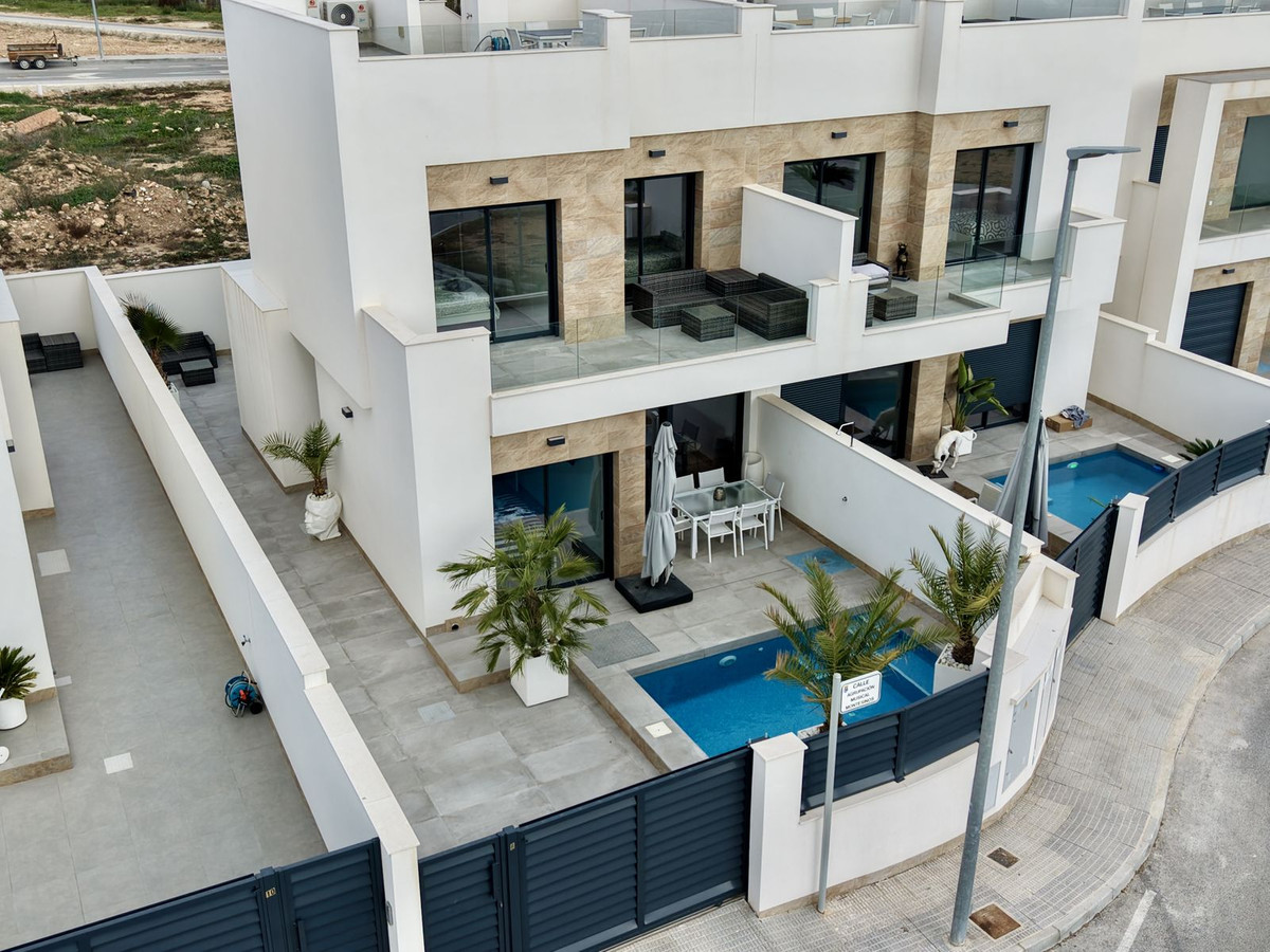 This exclusive new-build villa from 2024 is presented in Los Montesinos, Alicante, with south-facing orientation and open views of the salt lakes. A home with contemporary design, very bright, and finished with high-quality materials, ideal both as a permanent residence, second home, or investment.