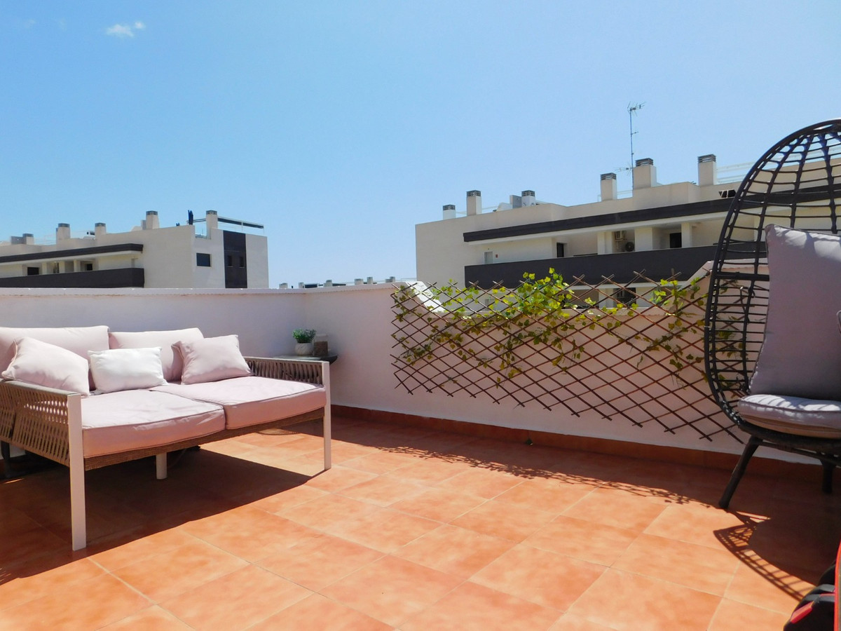 The property itself comes with a front garden perfect for the morning coffees which leads into the large living room and French style kitchen. The kitchen being fully equipped has direct access to the rear garden and pool area. Downstairs has a guest shower room and front balcony while upstairs holds the 2 bedrooms and family bathroom with bath. There is also a balcony off from the large bedroom which has been enclosed for a lovely sunroom. To the top floor you find the master double bedroom with en-suite shower. Adjacent to the bedroom is the extensive solarium. Partly furnished with air-conditioning, utility room, toldos and electric heaters throughout.