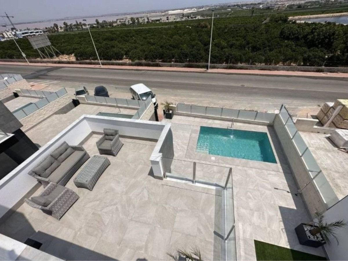 A luxurious 197 m² villa for sale in one of the best areas of Torrevieja – Los Altos!Key features: 3 floors of spacious and elegant living space, 3 bedrooms, 3 bathrooms. Private pool for comfortable relaxation with stunning views of the pink lake, the sea, and the orange groves. 90 m² garage – possibility of creating an additional room with a bathroom. Large terrace and solarium with panoramic views. Equipped with 12 solar panels (6 kW), 2 storage batteries, and an inverter. Official grid-connected electricity sales – minimal electricity bills! The house has an alarm and video surveillance system.Ideal location: 5 minutes from a good school, kindergarten, hospital, and large supermarkets. 10 minutes by car from the largest shopping center, La Zenia Boulevard.Ideal for both family living and vacations.Call us to arrange a visit!If you'd like a virtual tour or a floor plan, please don't hesitate to contact us.It will also be a very good investment, and we help with our successful seasonal rental service. Contact us for more information.