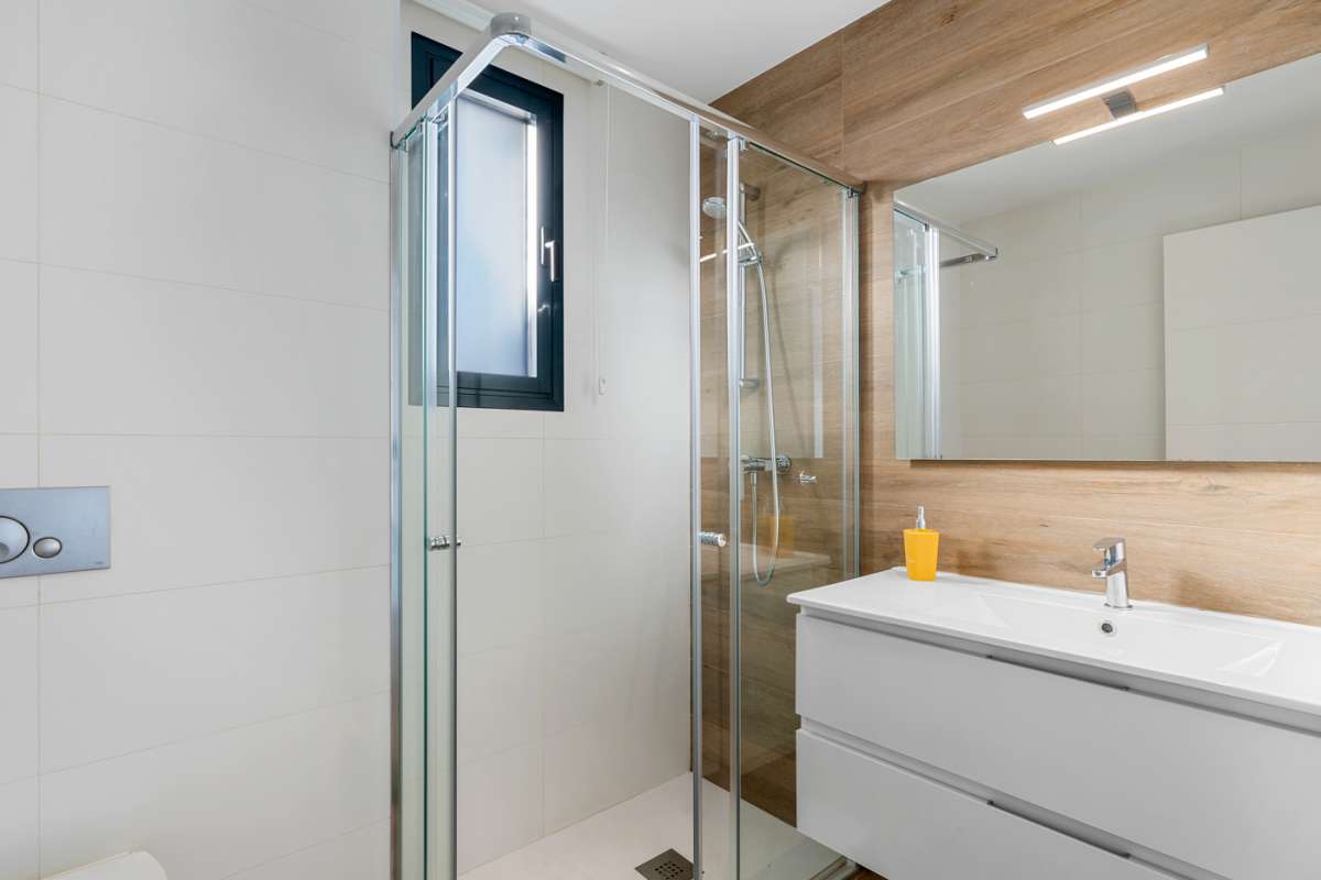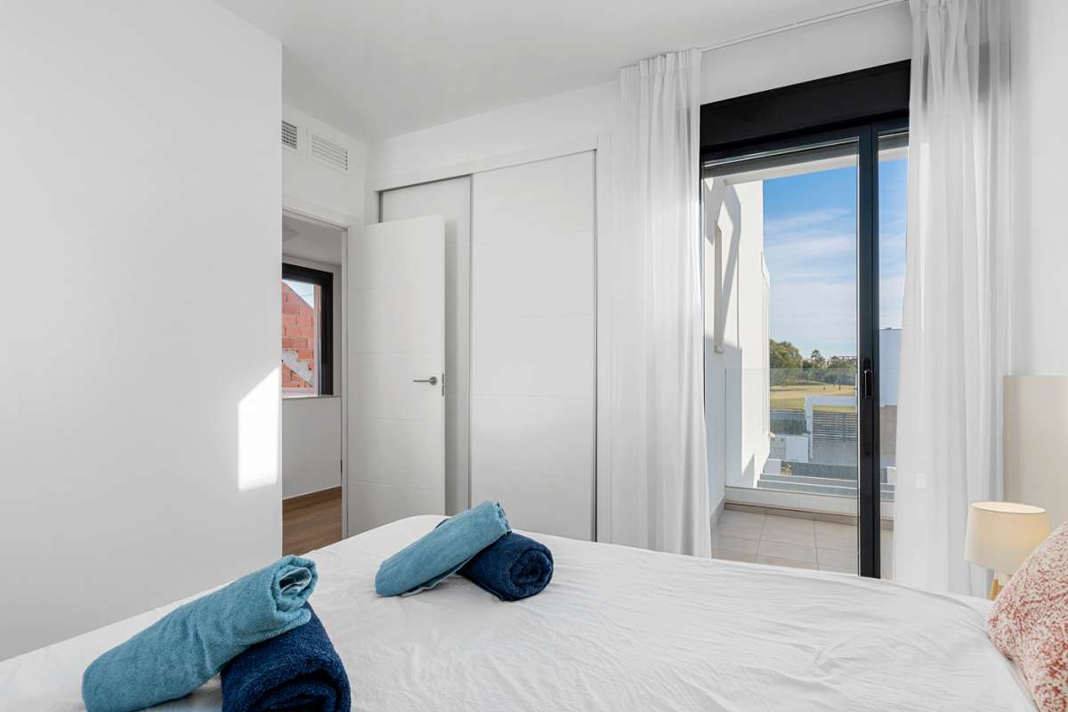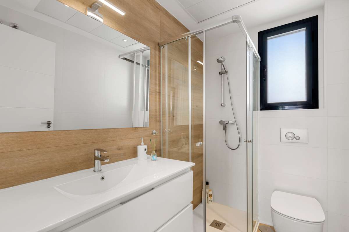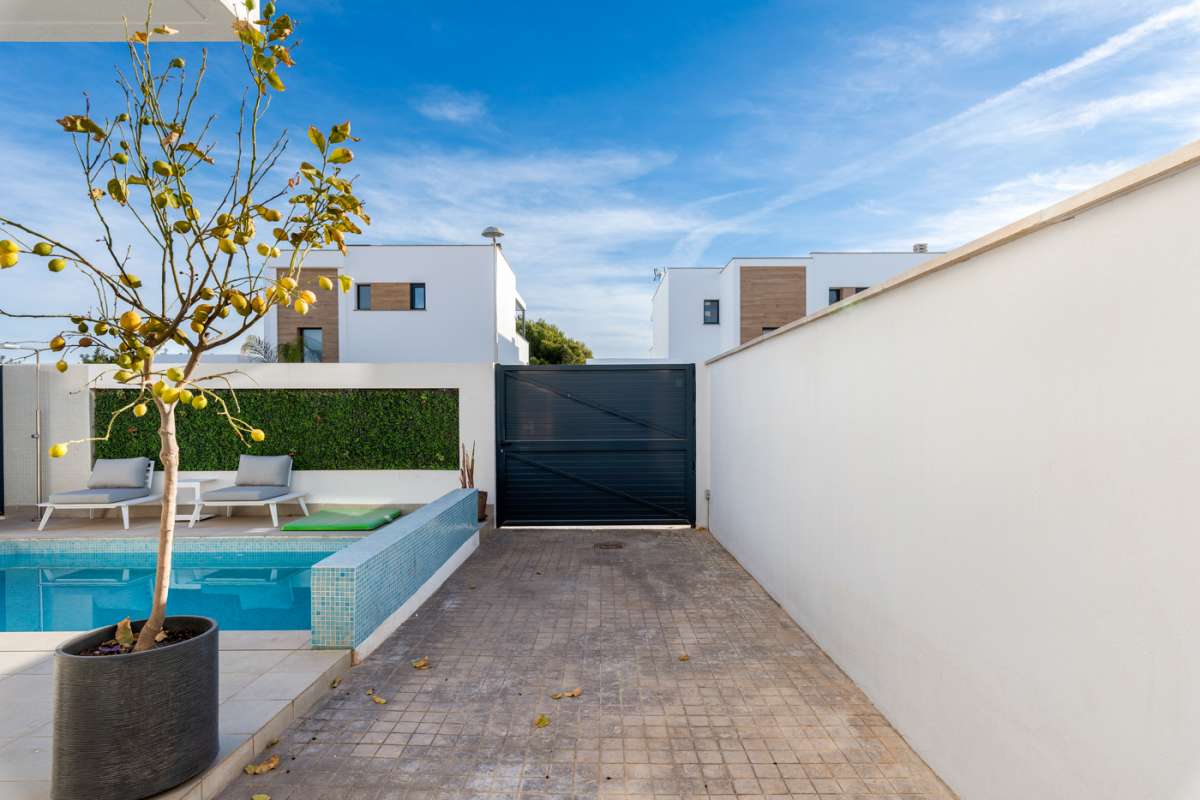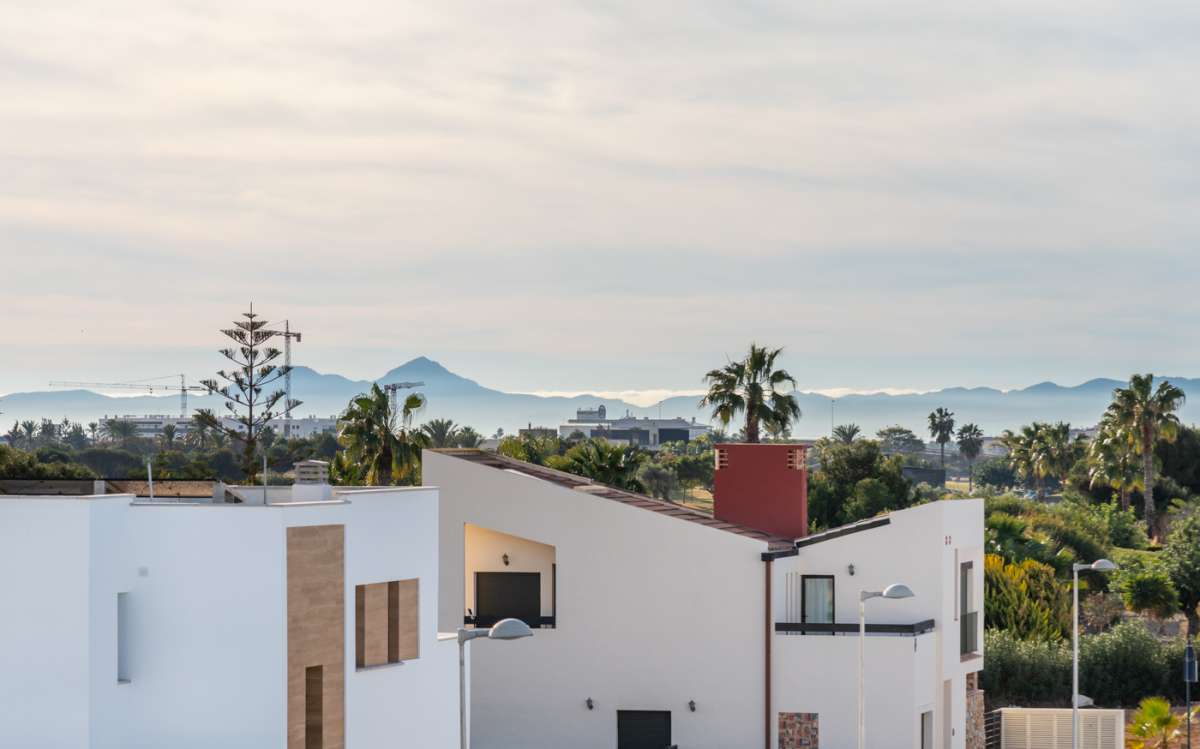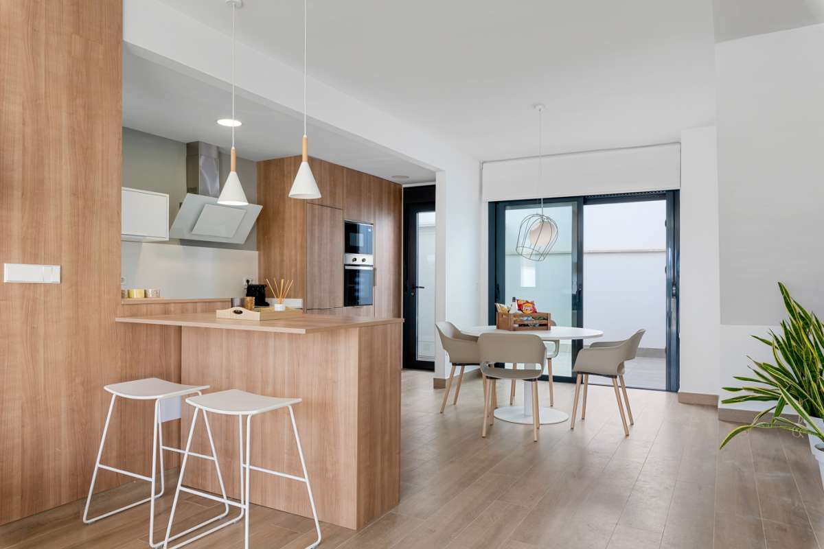 Discover the ultimate in Mediterranean living in our beautiful villa in Roda Golf! Located on the 2nd line of the well-known Roda Golf, you will find this 3-bedroom, 3-bathroom villa with spacious, light-filled living space. Through the spacious terrace with private pool, you enter the plot of this semi-detached villa. Upon entering, you immediately notice the beautiful open space. Thanks to windows at both the front and rear of the house, this property is very light-filled. On the ground floor, in addition to the spacious living room and open kitchen, we also find a bedroom and a guest bathroom. Through the kitchen, the rear terrace can be reached, where there is also a garden shed. At the front of the house you will find the driveway with room for 2 cars, the spacious terrace and, of course, a private pool. This villa is being sold fully furnished.Upstairs, there are another 2 bedrooms and 2 bathrooms. From the master bedroom there is of course an en-suite bathroom, as well as access to a terrace with golf views. To the side of the house, we find another spacious terrace on the first floor, from where there is access to the solarium on the top floor. From here you have breathtaking views of the golf course, the Mar Menor and even the mountains.All this just 3.5 km from the beach. Embrace the perfect blend of relaxation and stylish living. Welcome home to Roda Golf!Year of construction: 2021Common costs: €221.91 per quarter