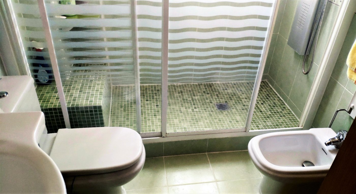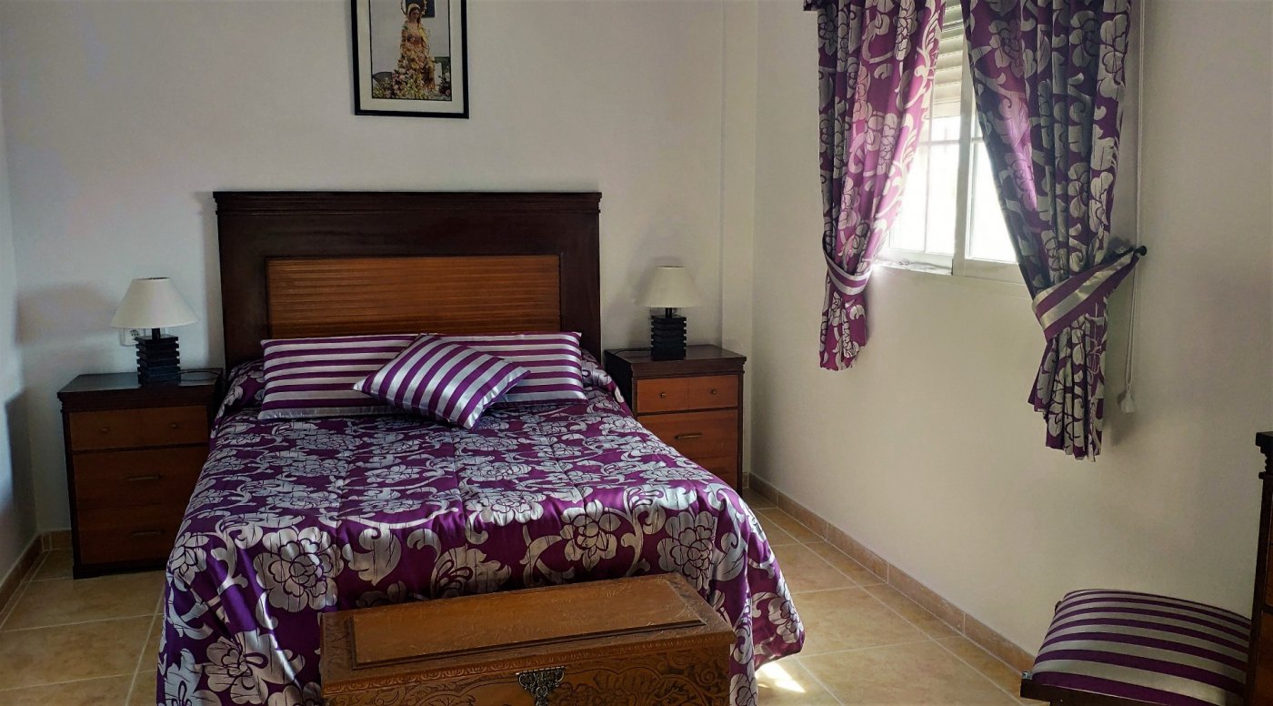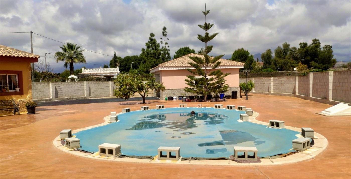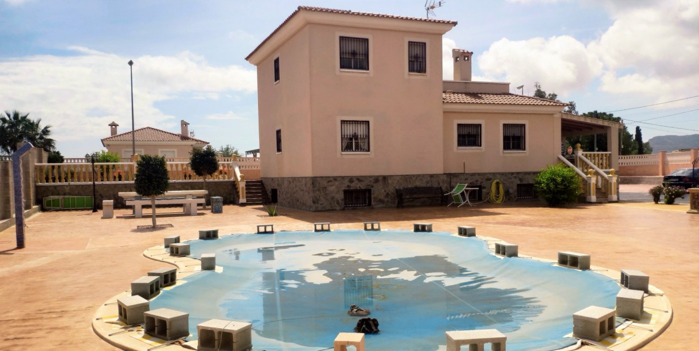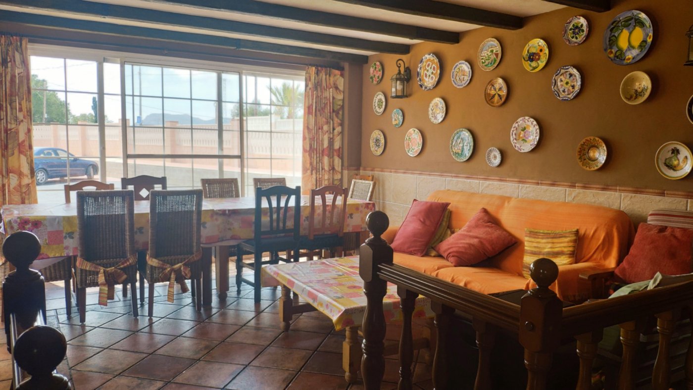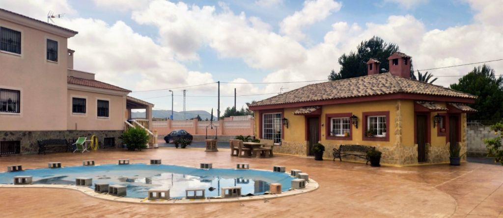 The main house consists of 4 bedrooms, 2 bathrooms and has a living area of 250m2 and a fenced plot of 2297m2. There is a large living room with chimney on the ground floor, a closed kitchen, a 15m2 terrace, a covered terrace, a roof terrace and a balcony. There is also a storage room. There is also a large basement where is a second living room. The house has air condition and central heating.