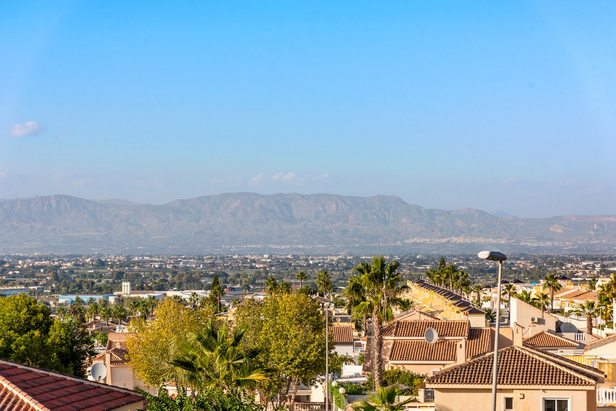 This impressive property, designed and built by a renowned Belgian project developer, is constructed with high-quality materials and exceptional craftsmanship. The villa has 4 spacious bedrooms and 2 family bathrooms, one of which has a bathtub. Upon entering, you're greeted by a spacious living room with high ceilings and an abundance of natural light streaming through large sliding windows. These windows can be fully opened, seamlessly merging indoor and outdoor spaces, allowing you to fully enjoy the beautifully landscaped garden, mountain views, and private pool. The open-plan kitchen, carefully integrated into the living room, creates a functional and stylish connection between the indoor and outdoor spaces. From the living room, you have direct access to the terraces and garden, which offer versatile areas for relaxation and complete privacy. Main features of the villa: Fully equipped kitchen. Separate utility room and storage room. Air conditioning (heating and cooling). Outdoor storage space, ideal for bicycles or other items. Private pool with heat pump for year-round enjoyment. Automatic pool cover with 6x heating effect. Parking space for two cars. Electric access gate. Location: Situated on the edge of a charming Spanish village, the property is just 1 km from all essential amenities. The Mediterranean beach of Guardamar del Segura is just a 13-minute drive away, and there is a golf course nearby. Alicante Airport is easily accessible via the AP-7 or N-332. This villa is perfect for those who value peace and comfort while staying close to a vibrant neighborhood. Don't hesitate to contact us to experience this remarkable property for yourself.