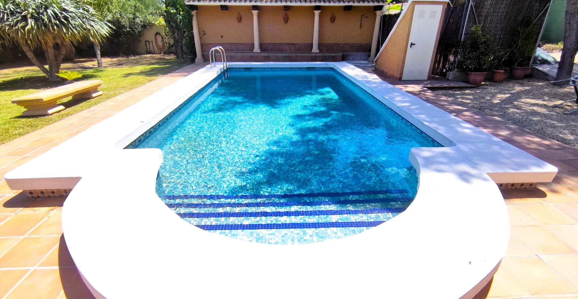 bathrooms, 280m2 living area, 2000m2 fenced plot, garden, private pool,