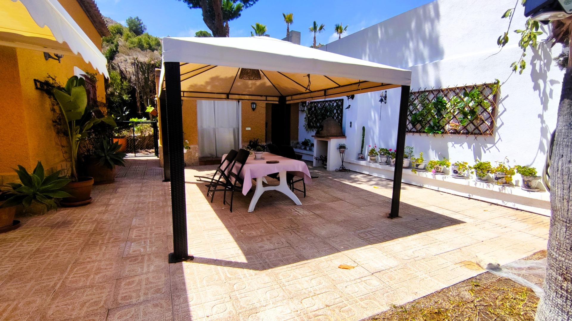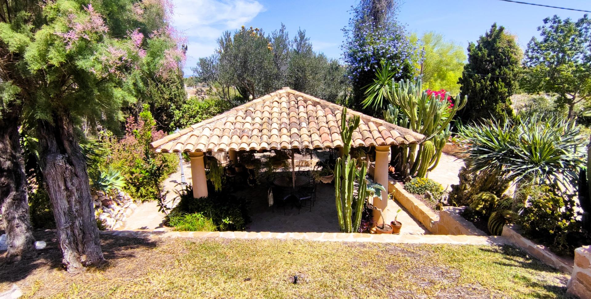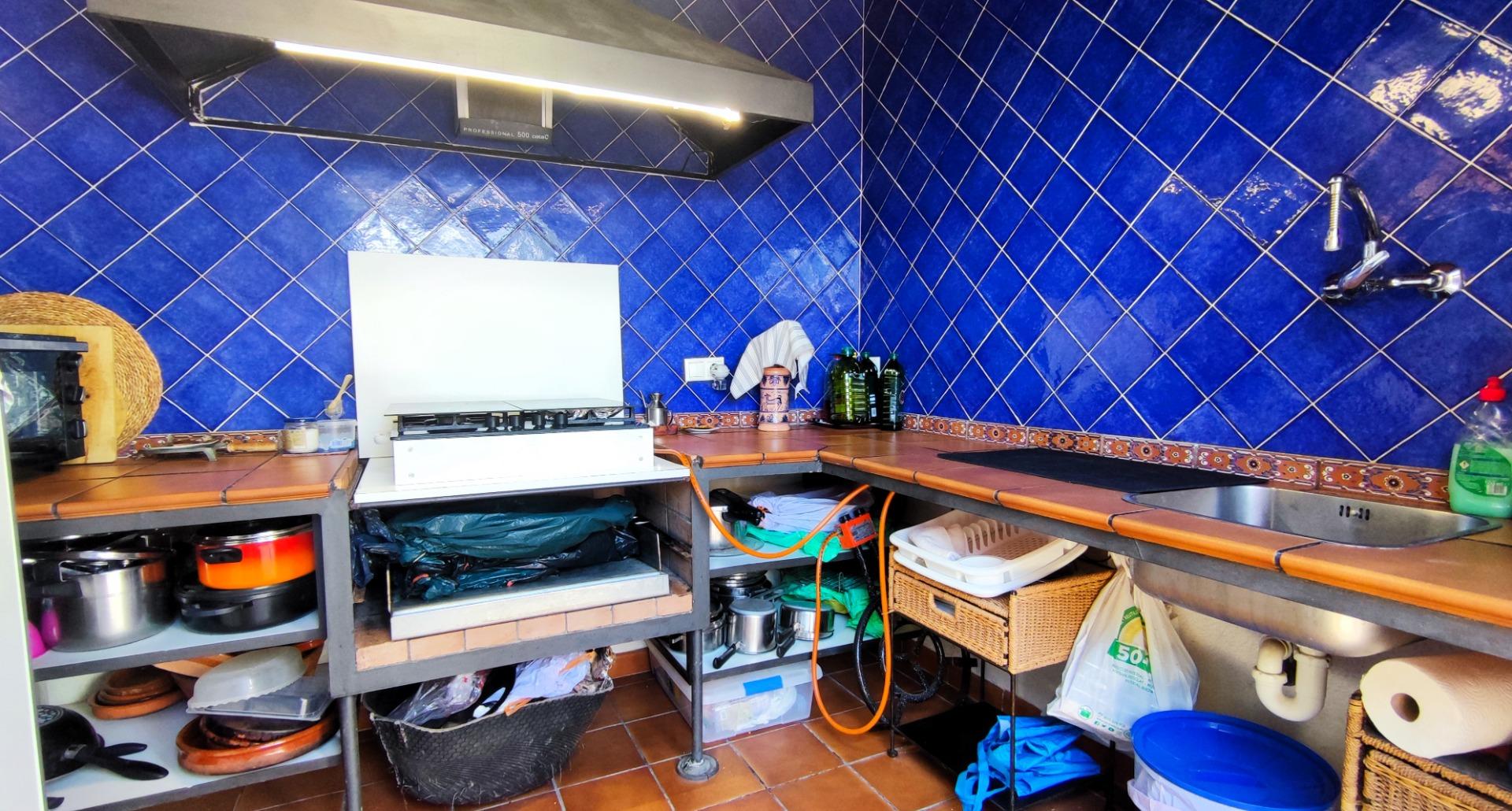 is an private pool, a summer kitchen with barbecue, a garage and a pavilion.