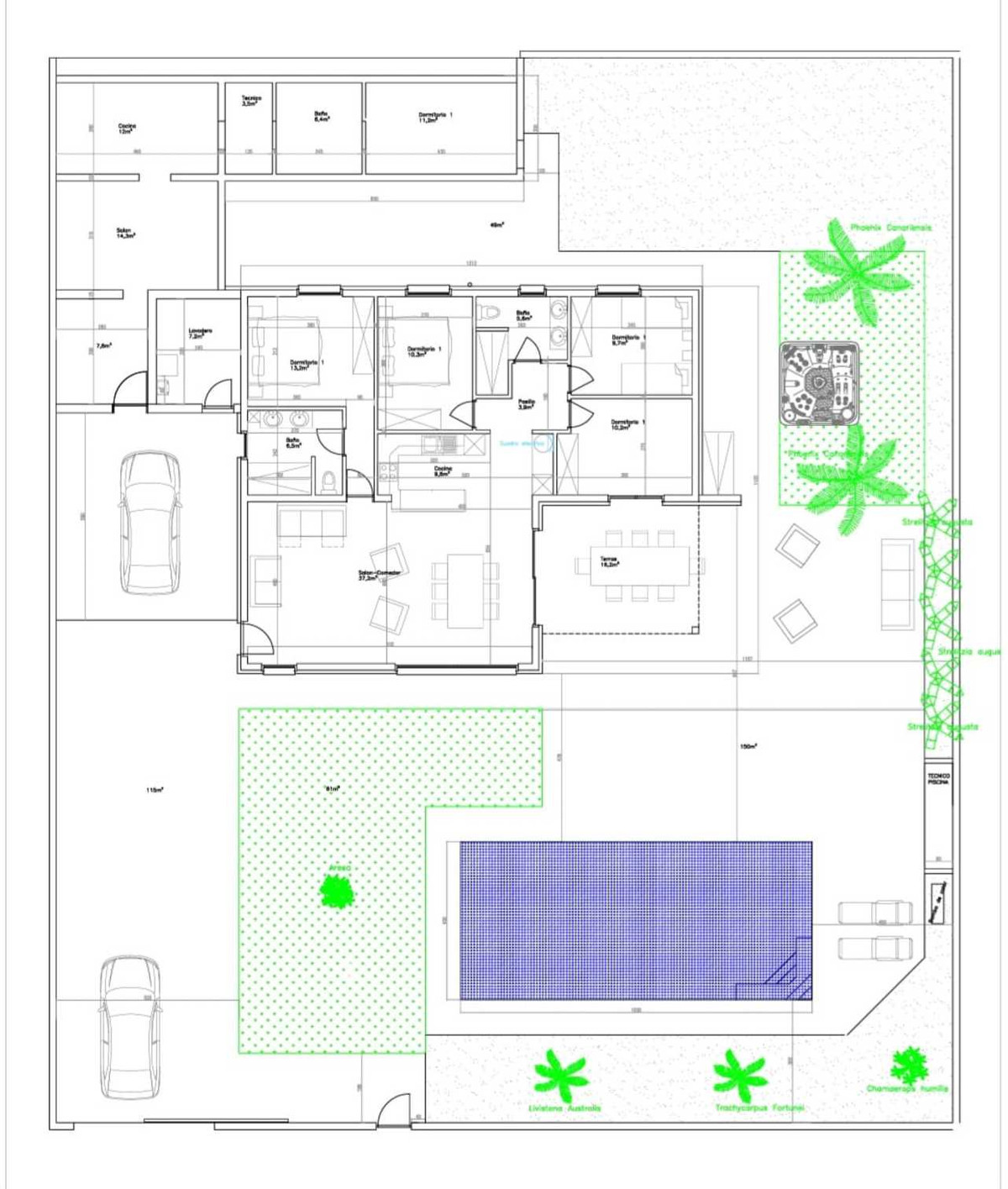 There is also a large porch to park a car out of the sun, an alarm system inside the house but also on the outside. Also CCTV system and doorbell that is linked with your smartphone.