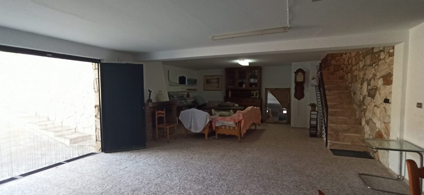 The house consists of a 12m2 kitchen, a 120m2 dining room, a 30m2 living room, a 50m2 terrace, 3 double bedrooms and a single room, 3 bathrooms, a toilet, a storage room, a basement of 120m2 which could be converted into two guest houses and has a living space of 400m2 and a fenced plot of 3500m2. In the garden is a private fenced pool, a large terrace and a summer kitchen. There is also a garage and a roof terrace. The house has air condition.