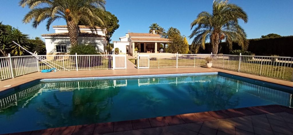 bathrooms, 400m2 living area, 3500m2 fenced plot, garden, private pool,