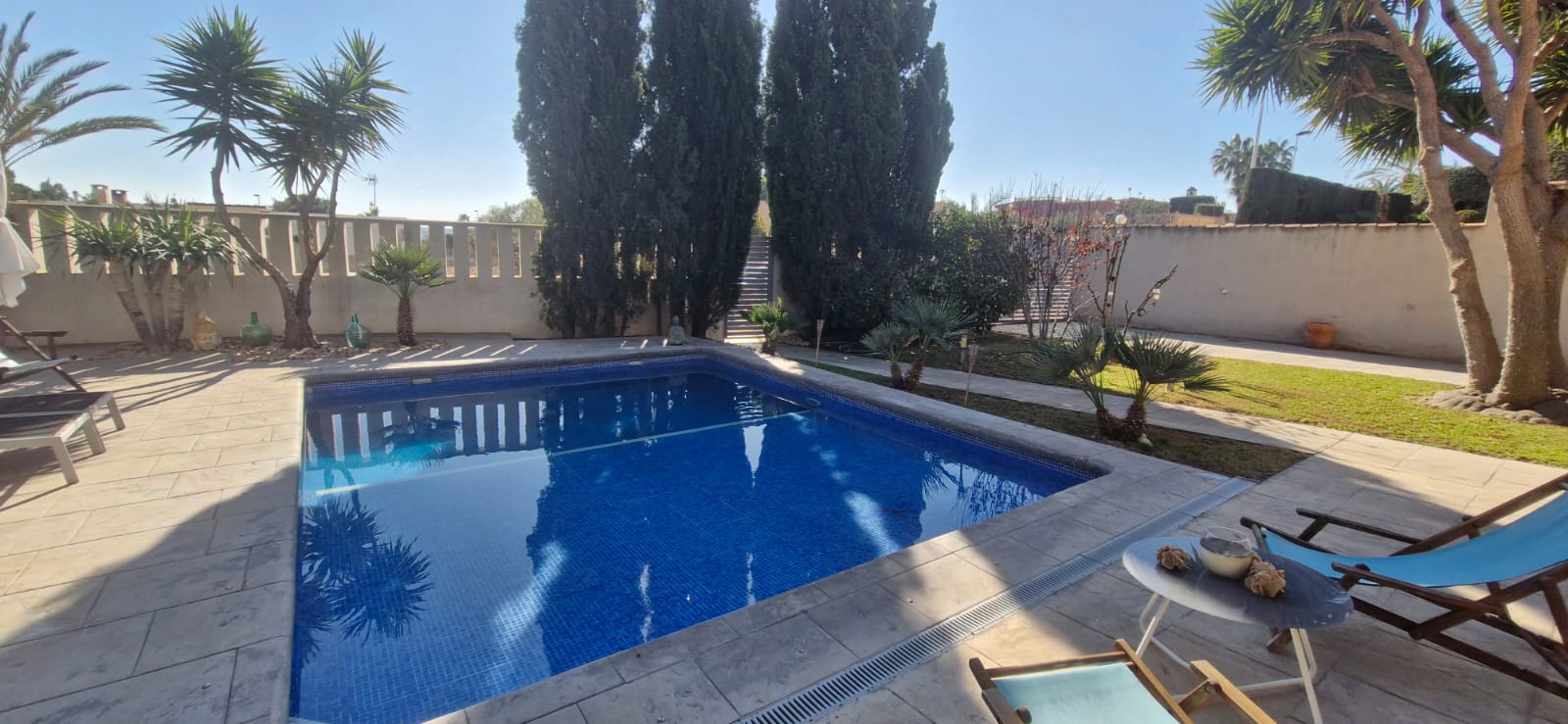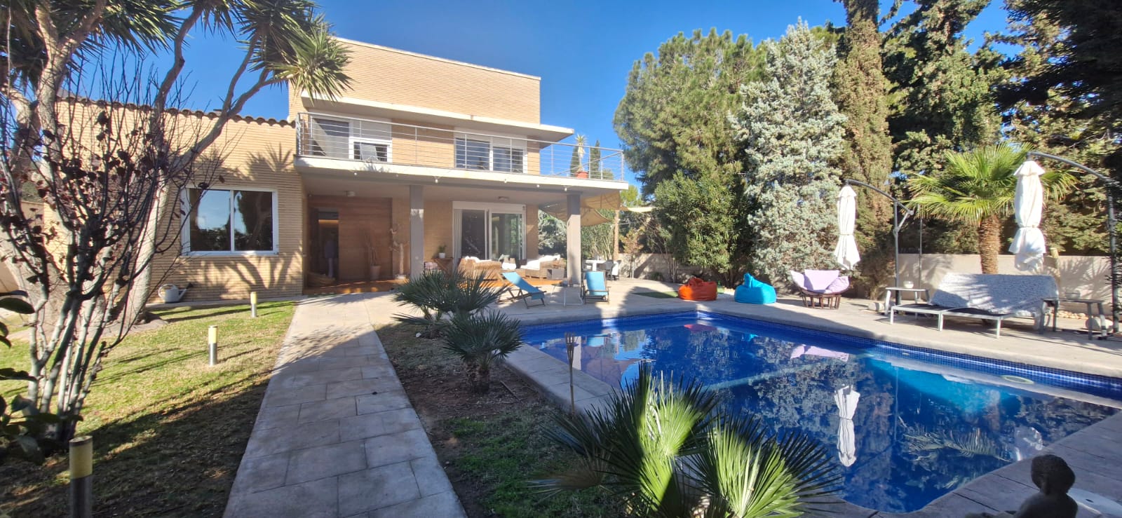 bathrooms, 280m2 living area, 1000m2 fenced plot, garden, private pool, terrace,