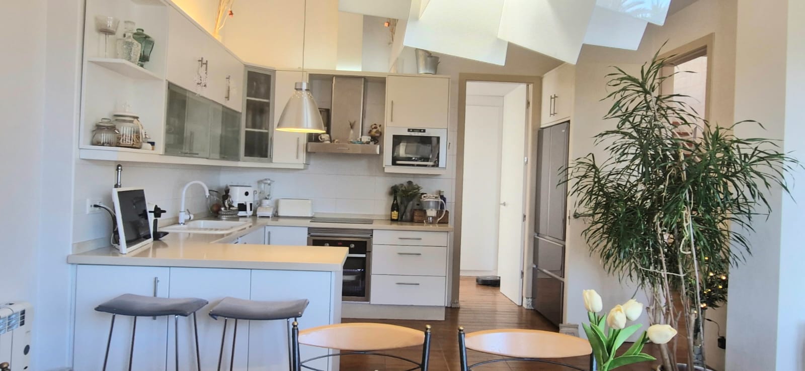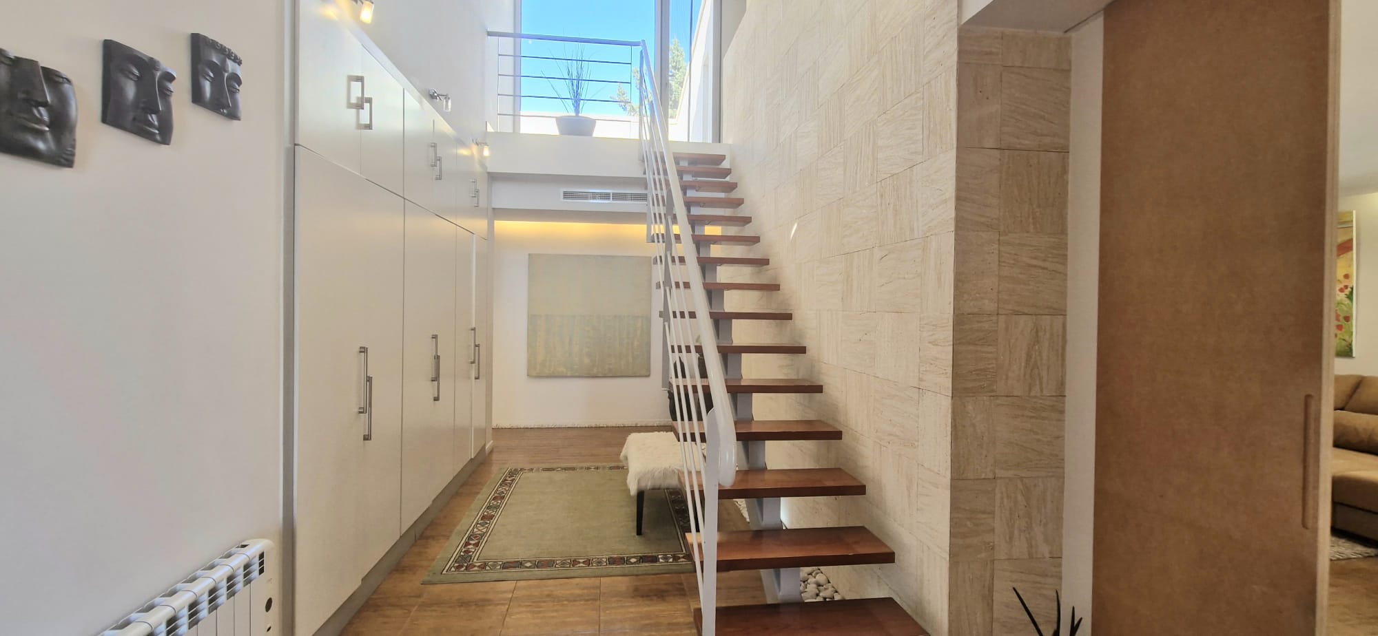 materials, with high ceilings, light porcelain floors, electric shutters,