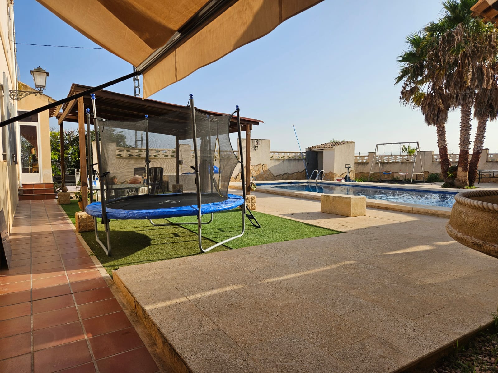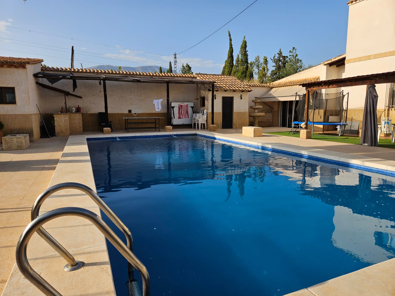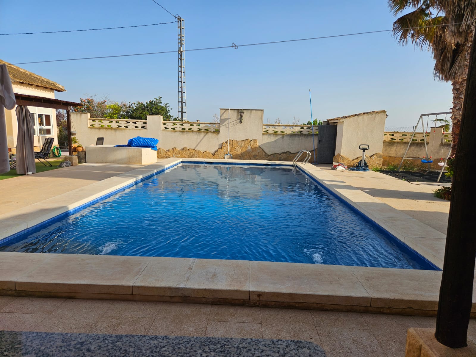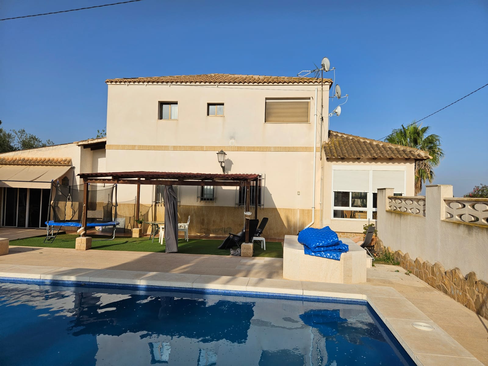 bathrooms, 300m2 living area, 3000m2 fenced plot, garden, private pool,