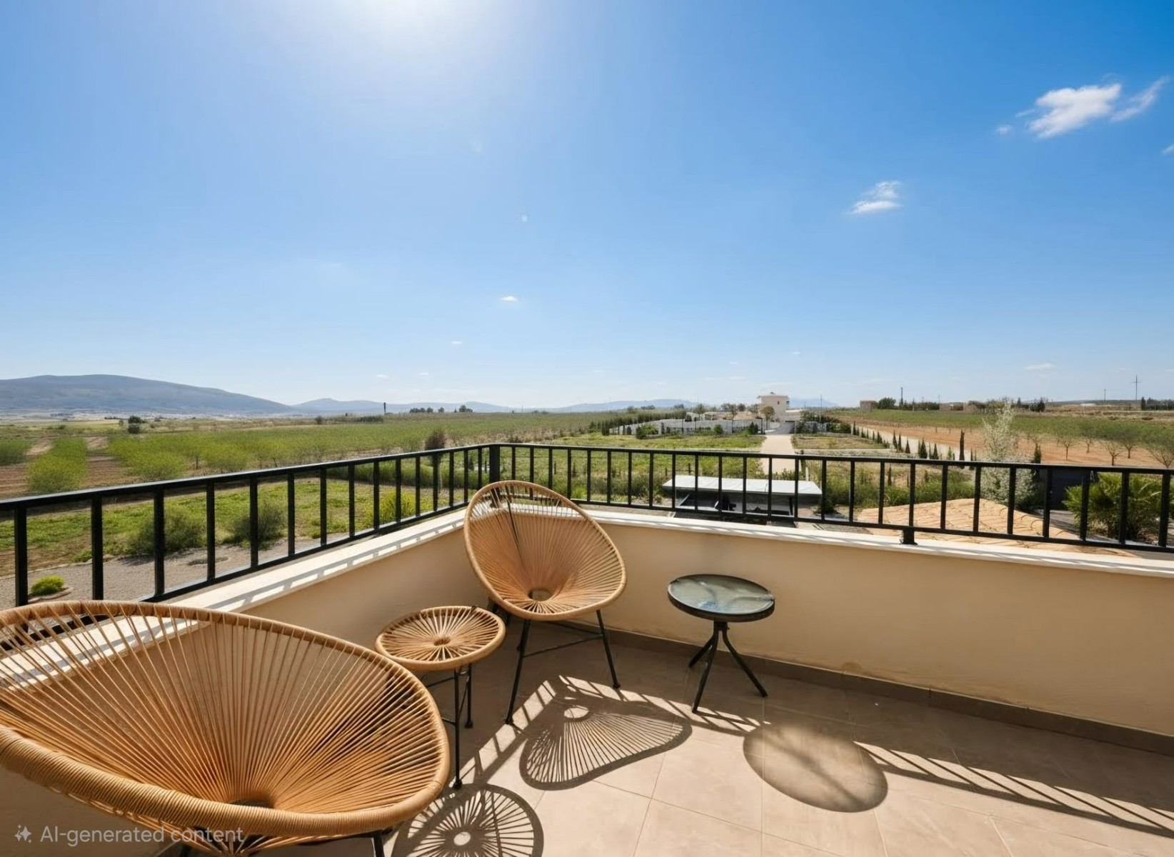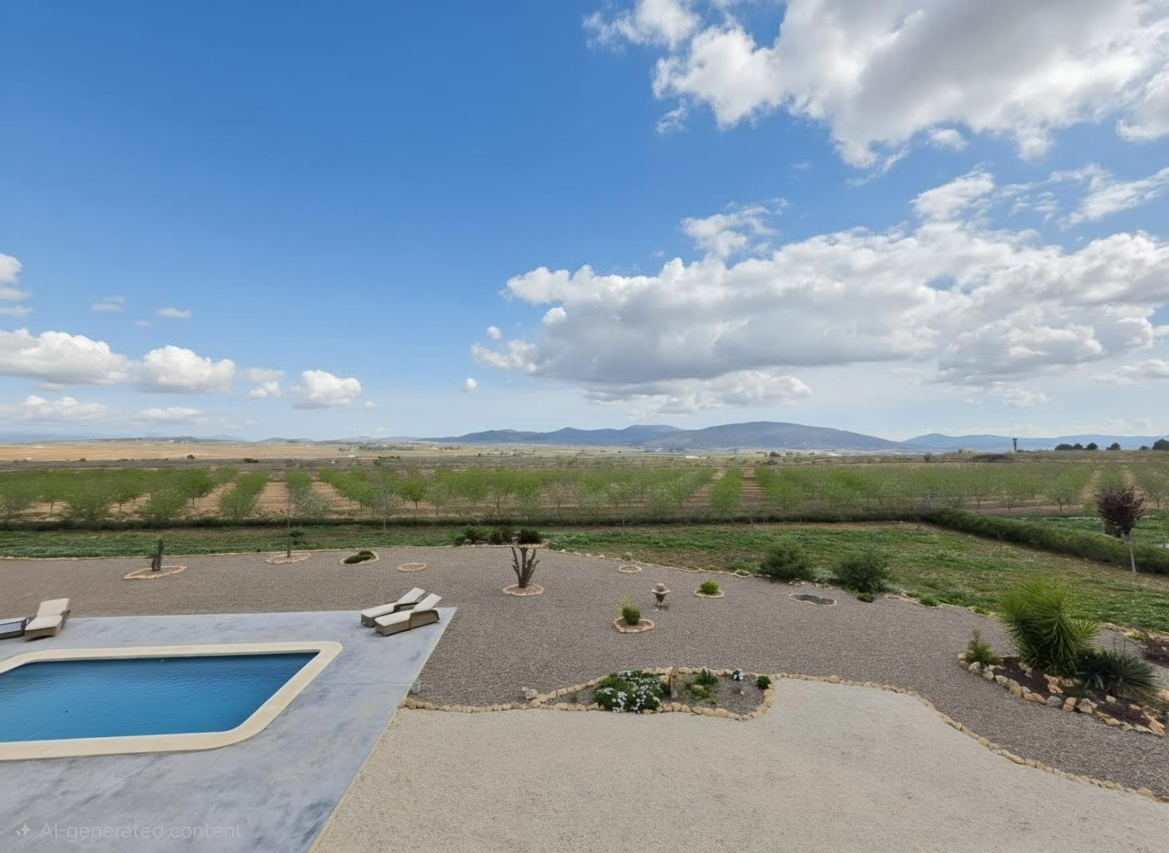 Key Ready: Luxury Country Living Within Walking Distance of PinosoDiscover the perfect blend of rustic charm and modern convenience in this impressive 4-bedroom, 3.5 bathroom detached villa. Set upon a generous 10,302 m² plot, this home offers an elevated lifestyle with commanding views over local vineyards, regional parks, and the picturesque town of Pinoso.The LifestyleWhether you are looking for a permanent residence or a high-end holiday retreat, this property is designed for those who love to entertain. The outdoor space is a standout feature, centered around a sparkling swimming pool surrounded by expansive, low-maintenance impressed concrete terracing and landscaped gardens. With a fully equipped outdoor kitchen, dedicated changing room, and toilet, summer afternoons here are effortless.Enjoy your morning coffee on the classic arched terraces, overlooking beautifully landscaped gardens and your own private pool and surrounding vineyards and orchards.The InteriorStep inside to an expansive open-plan living area that immediately feels like home. The clever layout separates the social and private spaces perfectly:The Heart of the Home: To the left, a chef’s dream kitchen features a central island and a large dining area perfect for large family gatherings. To the right, a beautifully furnished lounge area is anchored by a fully functioning fireplace—ideal for cooler Spanish winter evenings.Space for Everyone: The ground floor hosts a spacious master suite with a large en-suite bathroom. Upstairs, you’ll find a second grand master bedroom complete with a private dressing room and en-suite. Two additional guest bedrooms share a well-appointed family bathroom.A Room with a View: Every bedroom in the house benefits from direct access to terrace areas via patio doors, ensuring the stunning regional scenery is the first thing you see every morning.Modern Efficiency & ComfortThis is a “turn-key” property that doesn’t compromise on infrastructure. It uniquely benefits from being connected to mains electric and mains irrigation water, providing peace of mind and reliability. To keep running costs low, the property features a hydrid solar panel system integrated into the carport structure.Additional High-Spec Features:Climate Control: Ducted air conditioning throughout both floors and a cozy fireplace.Connectivity: High-speed internet already connected.Security: The entire 10,302 m² plot is fenced and accessed via electric gates.Utility: Separate laundry/utility room off the kitchen and a legal, modern septic tank.Extras: White goods are included, and high-quality furniture is available for negotiation, making your move even simpler.LocationWithin walking distance to Pinoso. You can enjoy the peace of the countryside and the beauty of the surrounding national parks while being just minutes away from award-winning restaurants, shops, and the vibrant local culture of one of Alicante’s most popular towns.Experience the scale and beauty of this property for yourself. Contact us today to arrange a viewing.About the AreaPinoso is a welcoming inland town known for its excellent local cuisine, vineyards, and friendly community. The town offers supermarkets, restaurants, schools, sports facilities, and medical services, making it ideal for year-round living. Surrounded by mountains, vineyards, and almond groves, the area is perfect for those who enjoy nature and outdoor activities while still being within easy reach of Alicante airport and the Costa Blanca beaches.We have a large portfolio of properties in the Costa Blanca and Costa Calida areas, specialising in country properties, villas, fincas, building plots and design and build options in the Alicante and Murcia regions with a particular emphasis on Elda, Monovar, Pinoso, Sax, Villena, Aspe, Fortuna, Albacete and many more surrounding areas. We have been established since 2004 and have decades of experience between the team which we bring to bear to help you find and secure your new dream home. We help you every step of the way to make sure your purchase in Spain is safe and hassle free. We are not here to sell you a property, we are here to help you realise your dream and find what is right for you. With us you are in the safest hands. Contact us now to have a no obligation chat about how you too can realise your dreams.